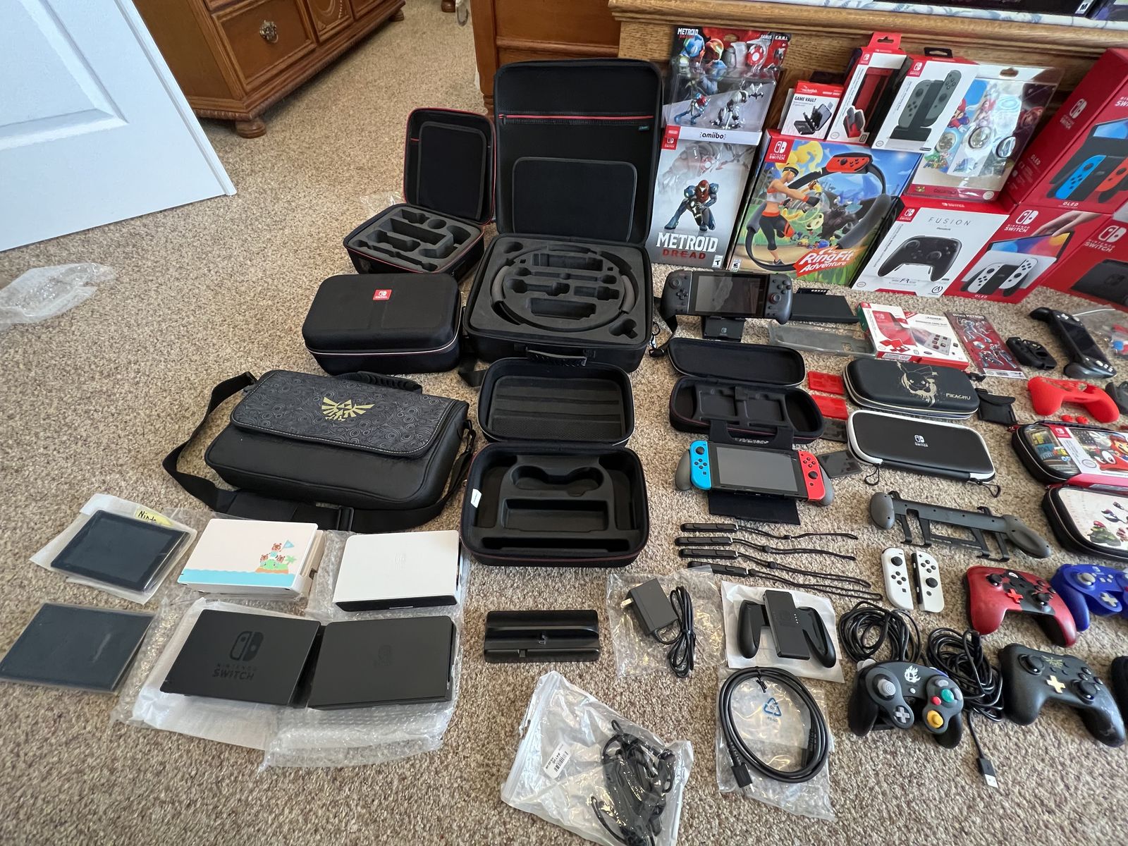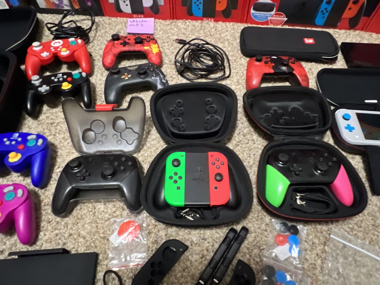 Here I have quite a wide range of accessories available including carrying/travel cases, dock compatible cases, Joy Con thumb stick covers, OEM original replacement and extra docks, chargers, Joy Cons, and more.