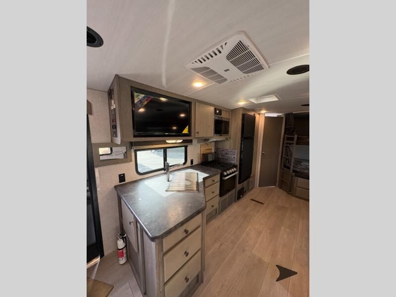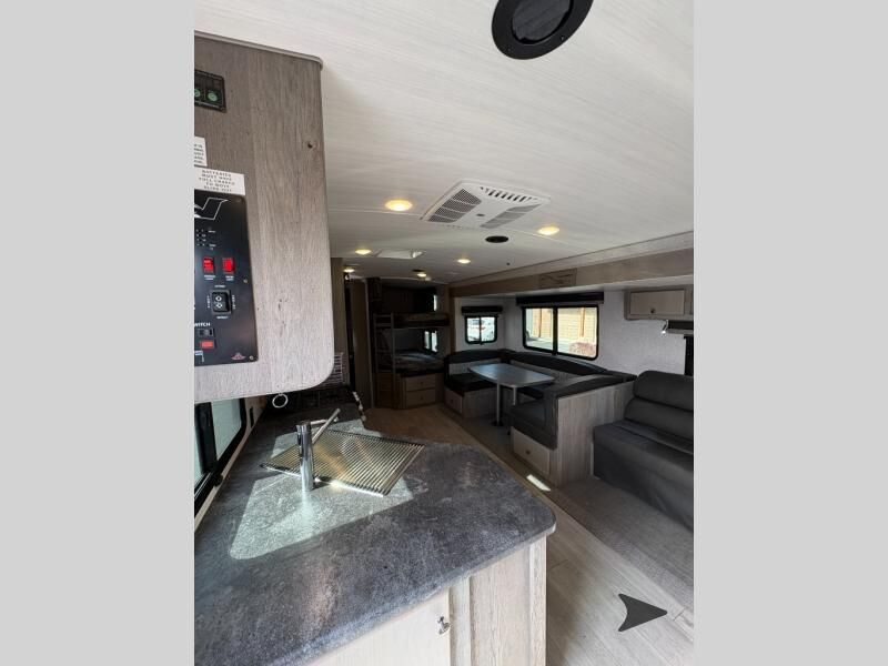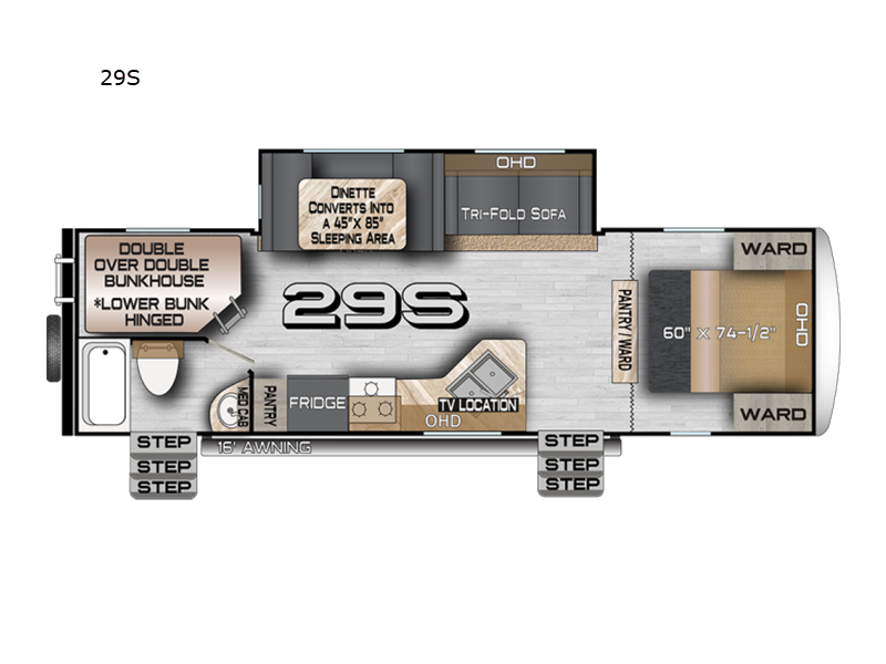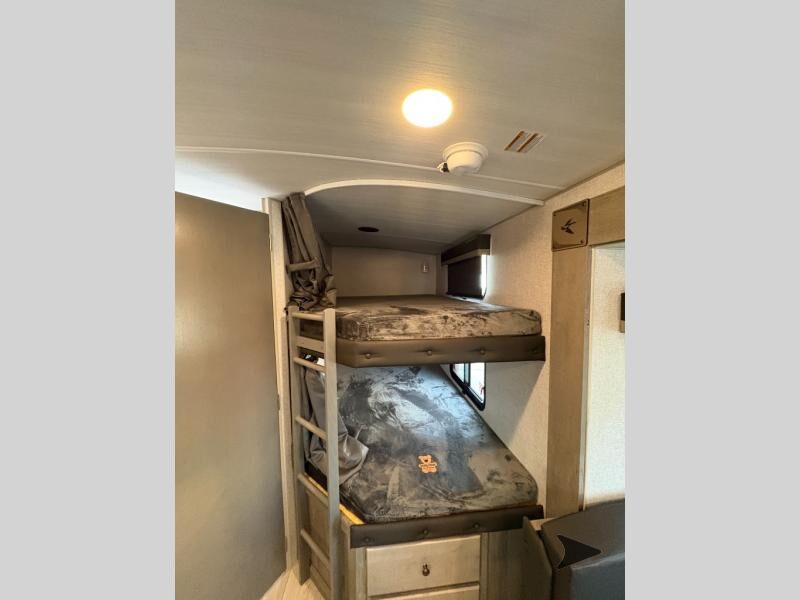 Northwood Nash travel trailer 29S highlights: Double-Size Bunks Dual Entry Large Slide U-Shaped Dinette Pantry/Wardrobe Load up the family and some friends to take off to the RV park for the weekend! You will have plenty of storage inside and outside, plus dual entry doors for a smooth flow of traffic. You will have a front bedroom with interior double entry giving you your own side of the bed and the kids will have double-size bunk beds. Any other guests you have can sleep on the U-shaped dinette and tri-fold sofa within the slide out when everyone is ready to call it a night. Be sure to take turns getting cleaned up in the full bathroom which has the second exterior entry door for convenience. And the cook will have a 10 cu. ft. 12V refrigerator and a secondpantry for food storage. With any Nash travel trailer by Northwood, you can be sure you're getting a durable RV made to last thanks to the fully welded, thick-wall aluminum frame construction and Northwood built Ironhorse chassis. There are also thermal pane windows, Corona treated fiberglass, and all-conditions/four seasons insulation so you can camp year around! A pass through storage with an LED light will let you easily store camp gear and the SolX 4 - 400 Watt Solar Package will provide some off-grid capabilities. If you're wanting to go even more off-grid, just choose the optional Off The Grid Package! Head inside to enjoy the cathedral arched ceiling, along with slow rise night shades, a Northwood TruRest mattress, an AM/FM stereo with Bluetooth, and many more at-home comforts.