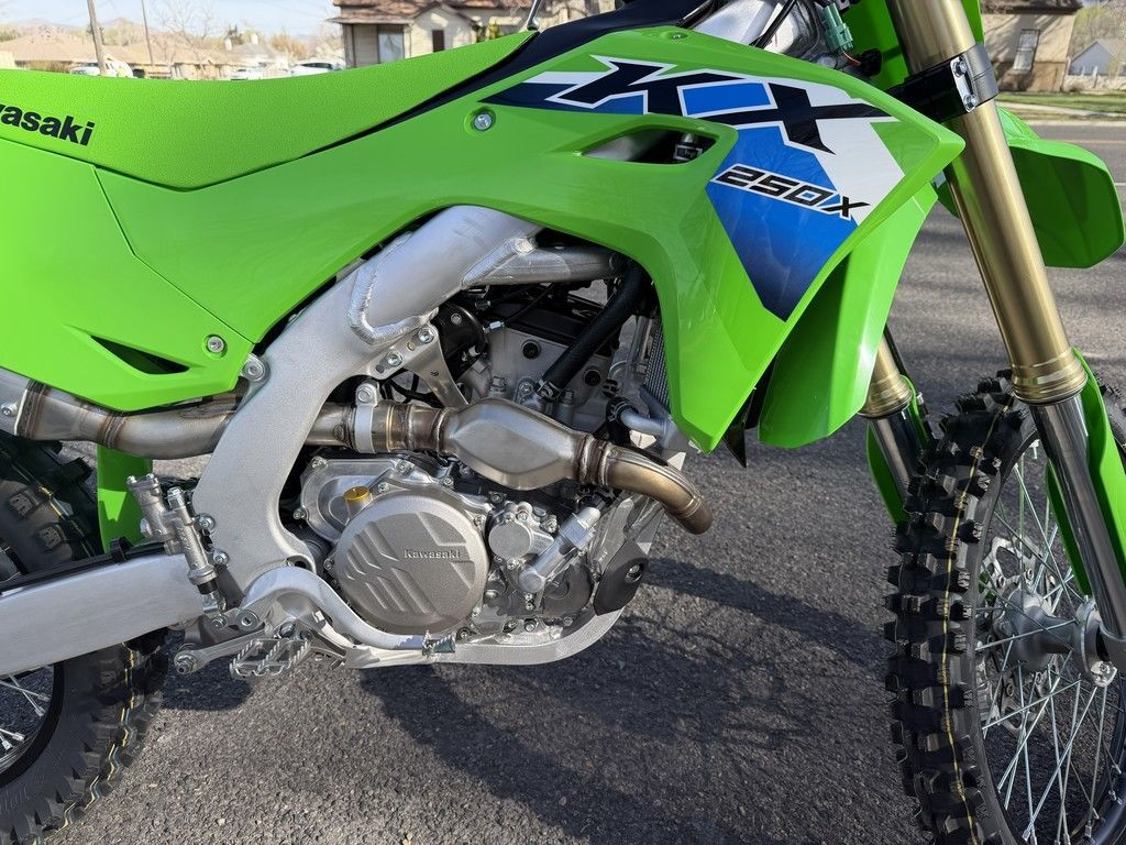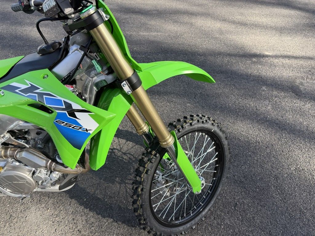 2026 Kawasaki KX™250XBE NEXTThe KX™250X motorcycle takes cross-country racing to the next level. Tuned for off-road racing, advanced tech like Power Mode Selection and Kawasaki TRaction Control (KTRC) combine with a high-performance chassis, a powerful engine, and off-road ready suspension to equip this championship-proven race machine for the most technical terrain. Climb the ranks quickly and confidently with the bike built for victory. Be Next on the KX250X.Features may include:POWER & PERFORMANCECROSS-COUNTRY POWERThe KX™250X motorcycle is built for cross-country domination. The anatomy of this powerful engine includes finger-follower valve actuation, a downdraft-style intake, and dual injectors. It’s our most competitive racing package to date.ADVANCED TECHINNOVATION WINSIn today’s ultra-competitive cross-country landscape, success at the highest level is aided through advanced tech. The KX™250X motorcycle is equipped with smartphone connectivity and electronic controls sourced directly from Kawasaki factory racing efforts, placing race-proven functionality at your fingertips.CROSS-COUNTRY HANDLINGOUTSTANDING CONTROLFeatures like a lightweight perimeter frame, Showa 49mm coil-spring fork, and Uni-Trak® rear suspension sharpen handling performance on every section of the course and make this championship-caliber bike a force to be reckoned with.ERGONOMICS & STYLETHE KX™ DIFFERENCEThanks to ERGO-FIT® adjustable components, you can optimize your riding position to unlock the bike’s massive performance potential. Sleek bodywork and bold, factory-style graphics stand out from the crowd while holding fast to the winning reputation of KX™ motorcycles.ADDITIONAL:FI settings optimized for off-roadCompact exhaust for optimized mass centralizationOptimized intake downdraft angle and fuel injection settingsSingle-shaft primary crankshaft balancerConed disc-spring hydraulic clutchShowa 49mm coil-spring fork and single shockODI lock-on gripsFlush bodywork and shrouds for improved rider interfaceQuick-release side cover offers tool-less air filter access K03763