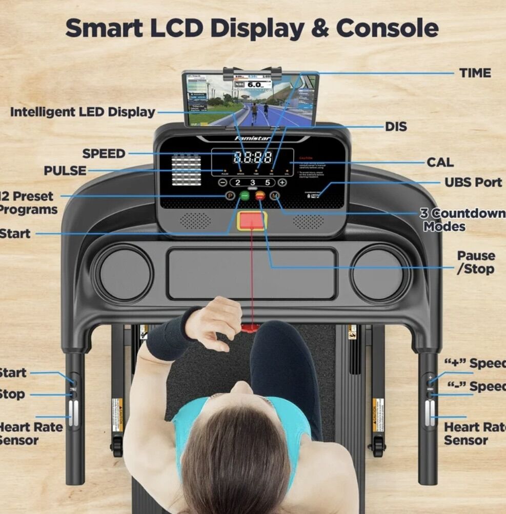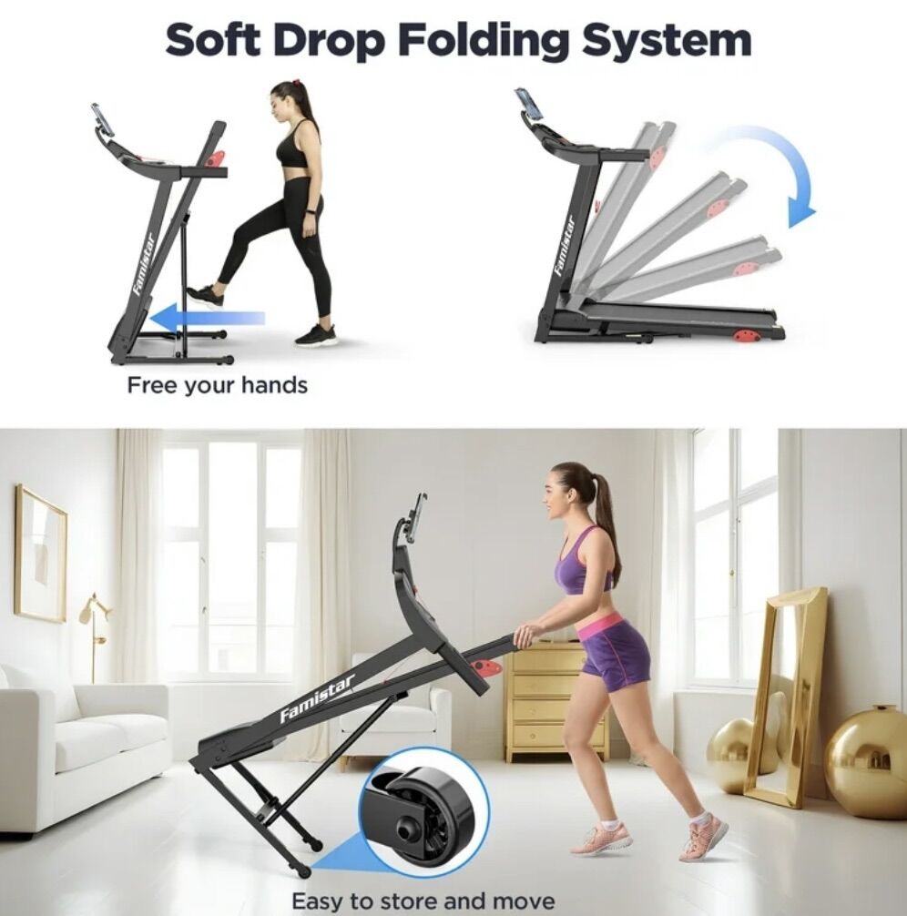 VenmoFamistar 3.7HP Folding Treadmill for Home w/ APP Control, 300lbs Capacity, Adjustable Incline, 64+7 Programs, Bluetooth Speakers, Electric Treadmill Running Machine, Knee Strap Gift