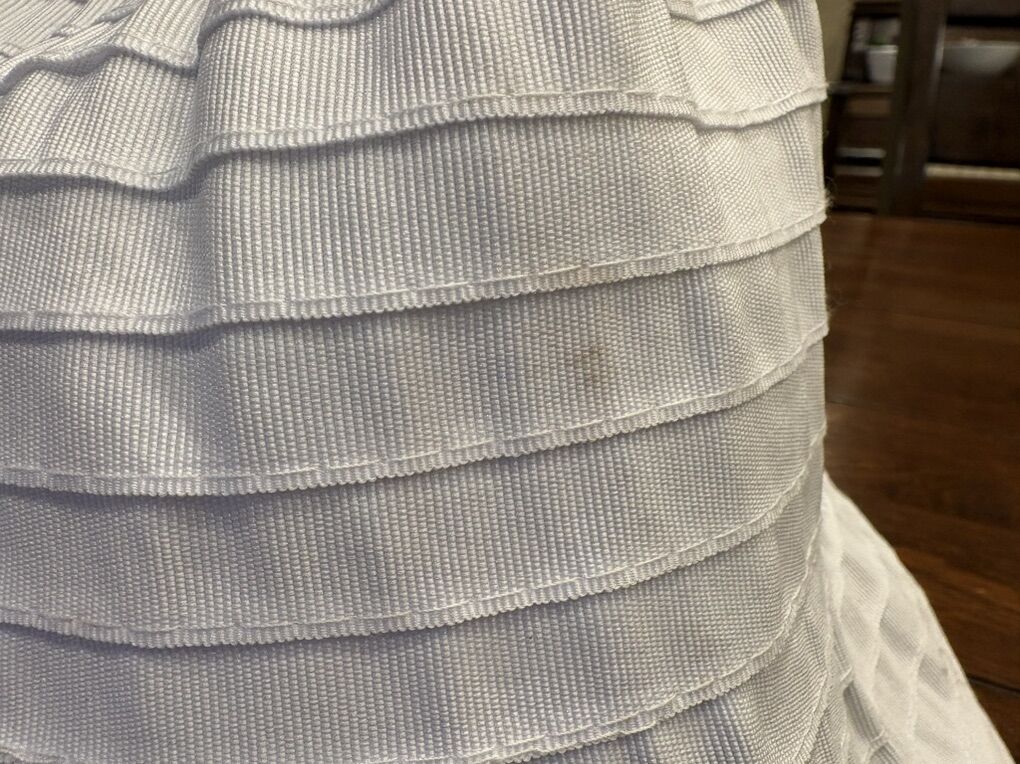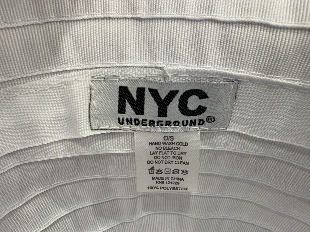 I have a white lightweight bucket hat by NYC Underground. It looks like bands of ribbon. The tag says One Size. It looks new except for one tiny spot (see the last picture). See my other ads for jewelry, artwork, home decor and more.