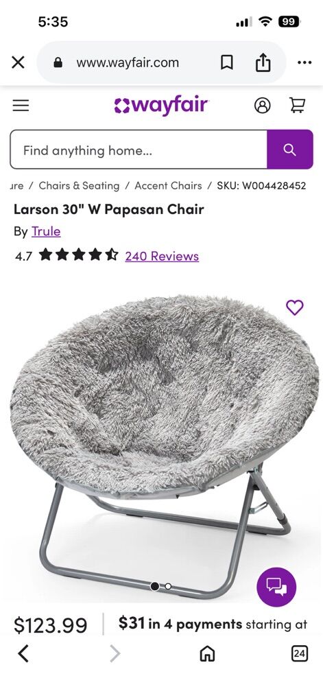 Larson 30” papasan chair New never used 75.00 cash only Text is best (801)814-6221 ( Keven)