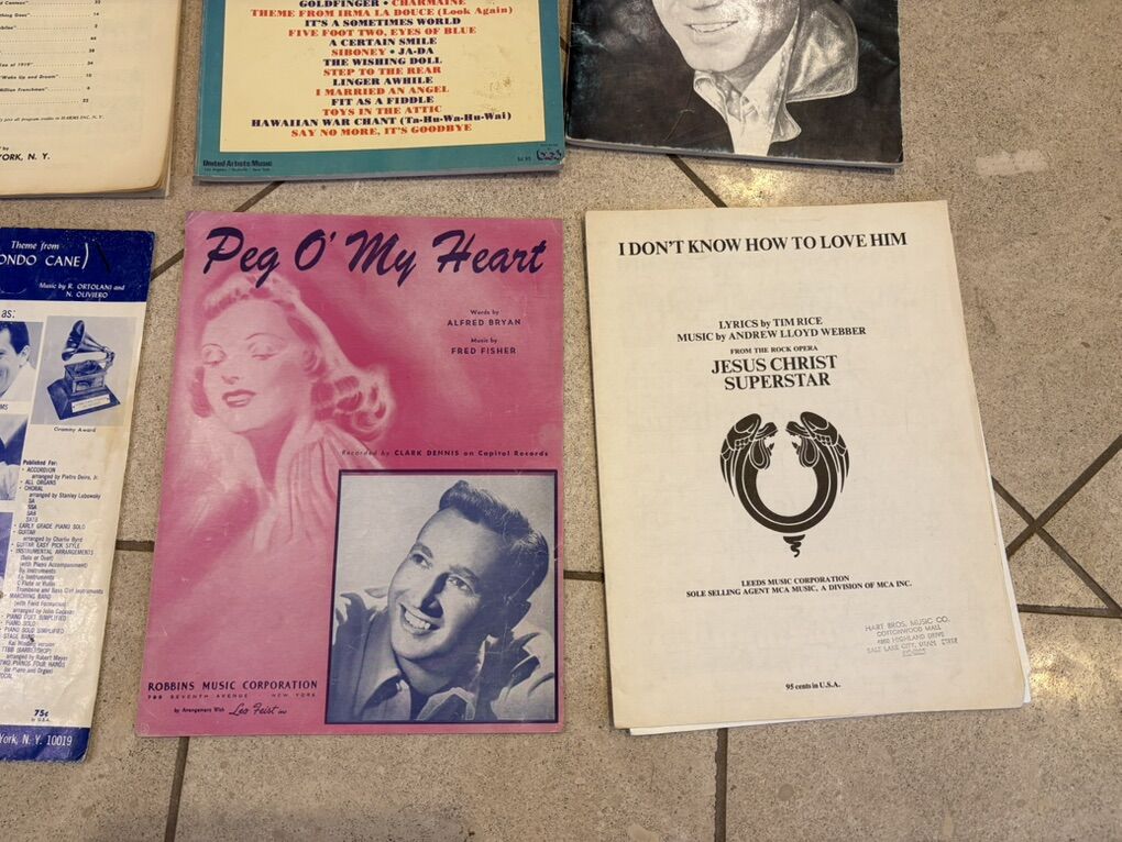 I have 12 vintage piano music songs or books. Most are just one song but some have more. The price is for everything together. See my other ads for jewelry, artwork, home decor and more.