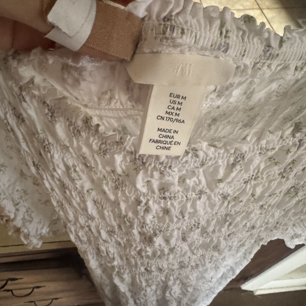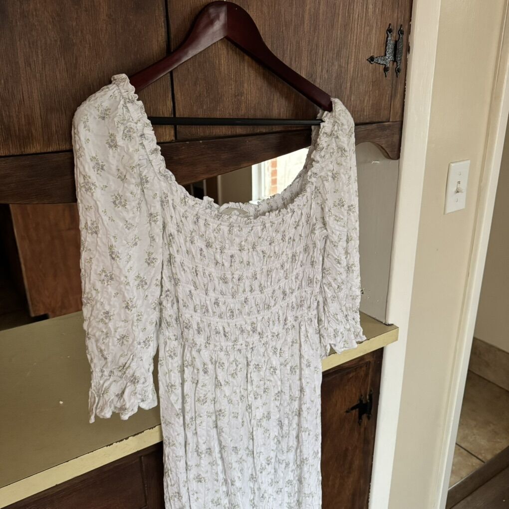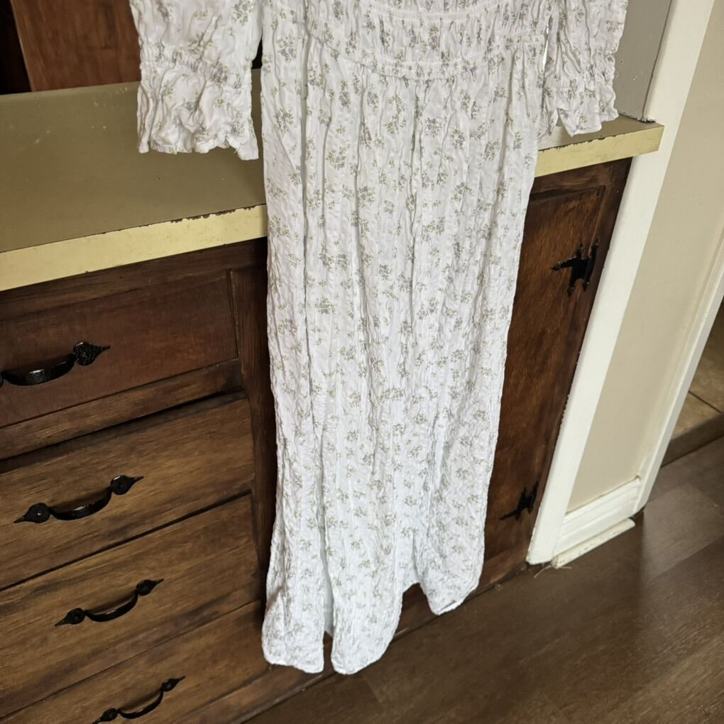 H&M Puff-Sleeved Dress in White Floral Print M