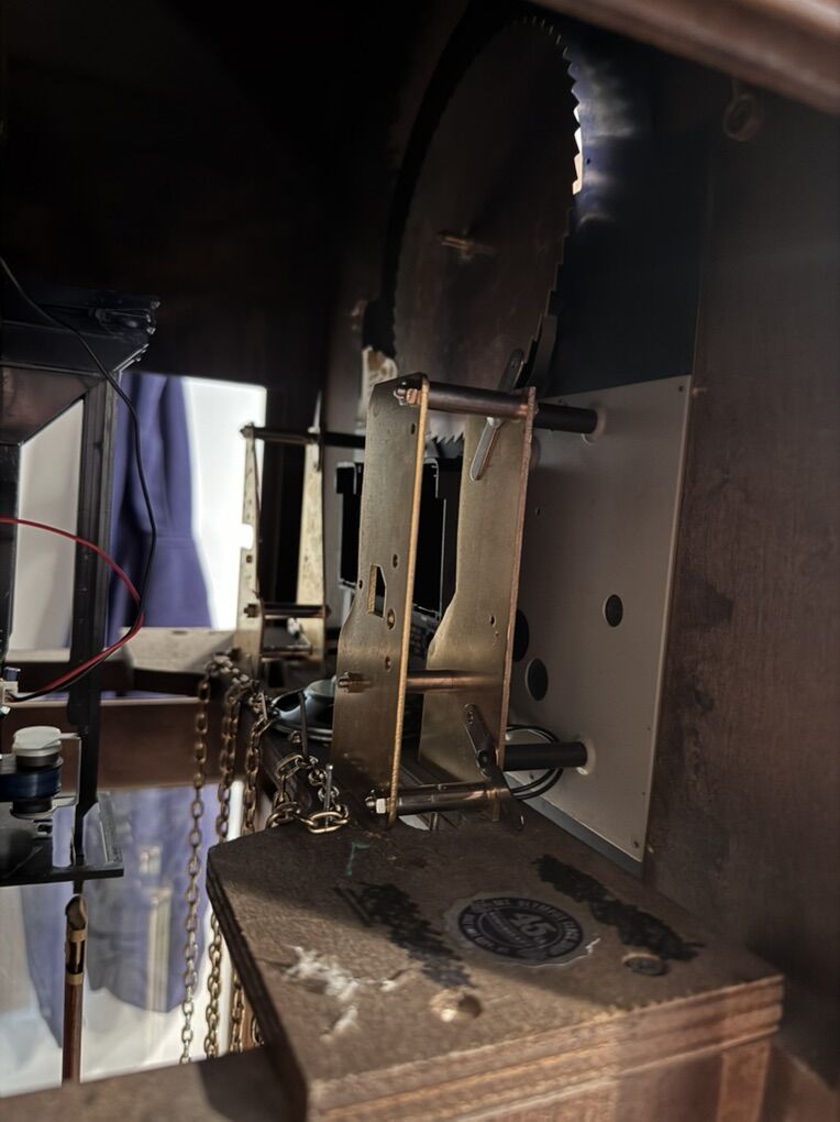 CashAppMust Sell before Christmas Ridgeway grandfather clock. Mechanical operation replaced with electronic clock assembly, chime and arm swinging thing. Can be set to play many different sounds including Christmas songs. Moon phase is for looks only due to mechanical movement replaced with electronic movement… See Less