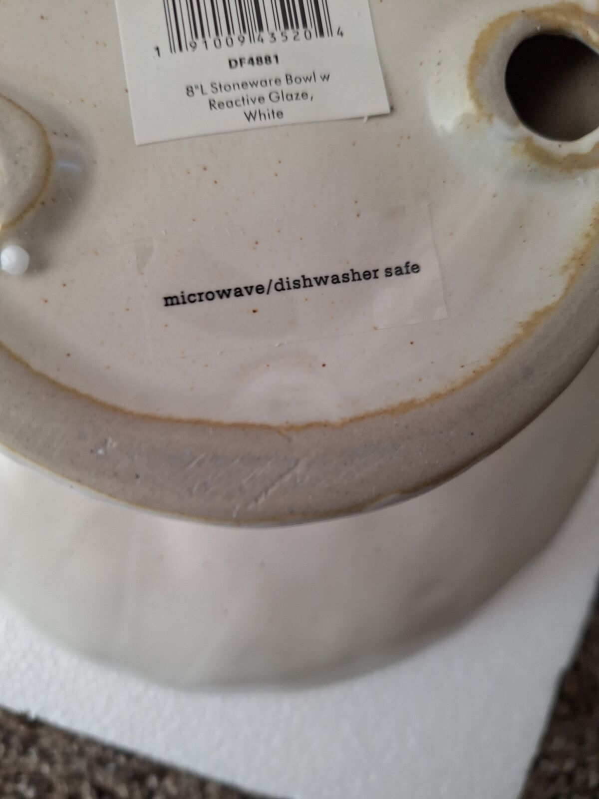 8 inch stoneware bowl w reative glaze white new