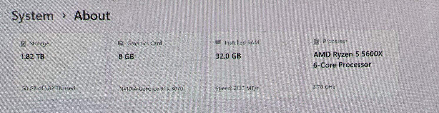Cpu: Amd Ryzen 5 5600x Cooler: NZXT 140mm AIO Liquid Ram: Corsair Vengeance RGB Pro SL White 32gb DDR4 3600mhz Mobo: Aorus B550I Pro AX GPU: MSI RTX 3070 8gb SSD: WD Black SN850x Gen4 NVMe 2tb PSU: 750w NZXT SFF PSU
