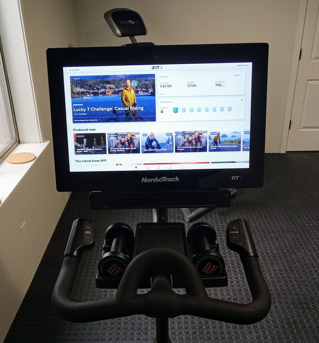 Awesome spin bike, what sets this apart from all others is that IFIT automatically adjusts the incline/decline & resistance settings to match the terrain throughout the workouts. Can be manually adjusted as well via the screen or handlebars