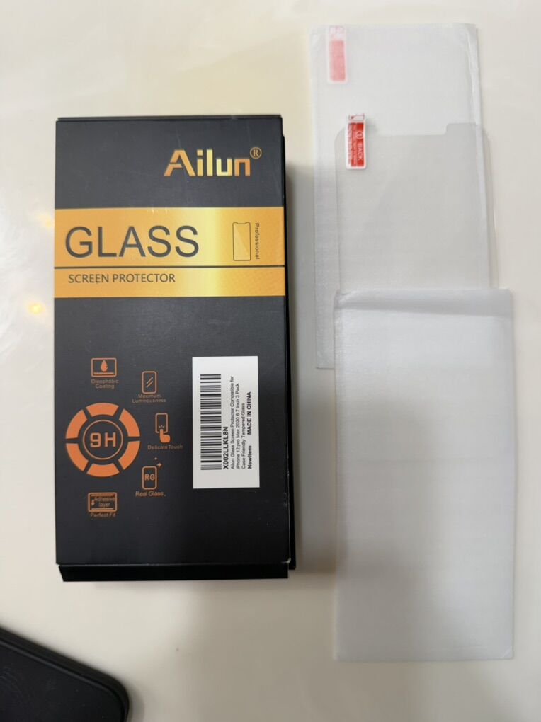 Also includes charger cable, 2 extra brand new glass screen protectors, 2 cases, and original box.