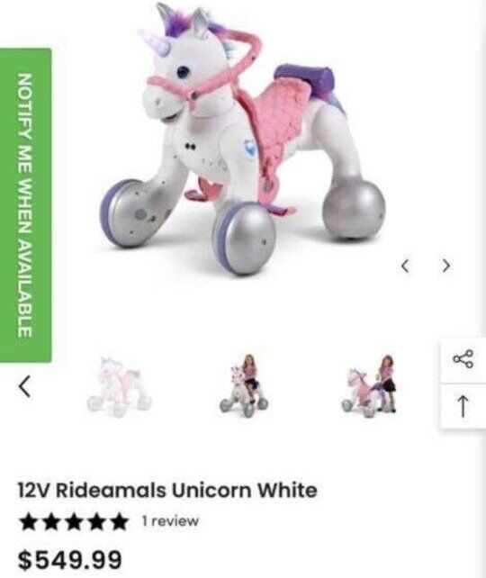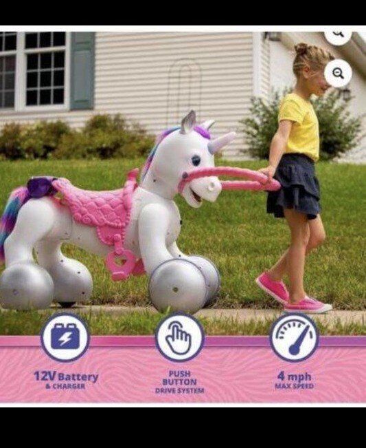 Kids Rideamal Unicorn 12 Volts Ride On Toy, Lights and Sound