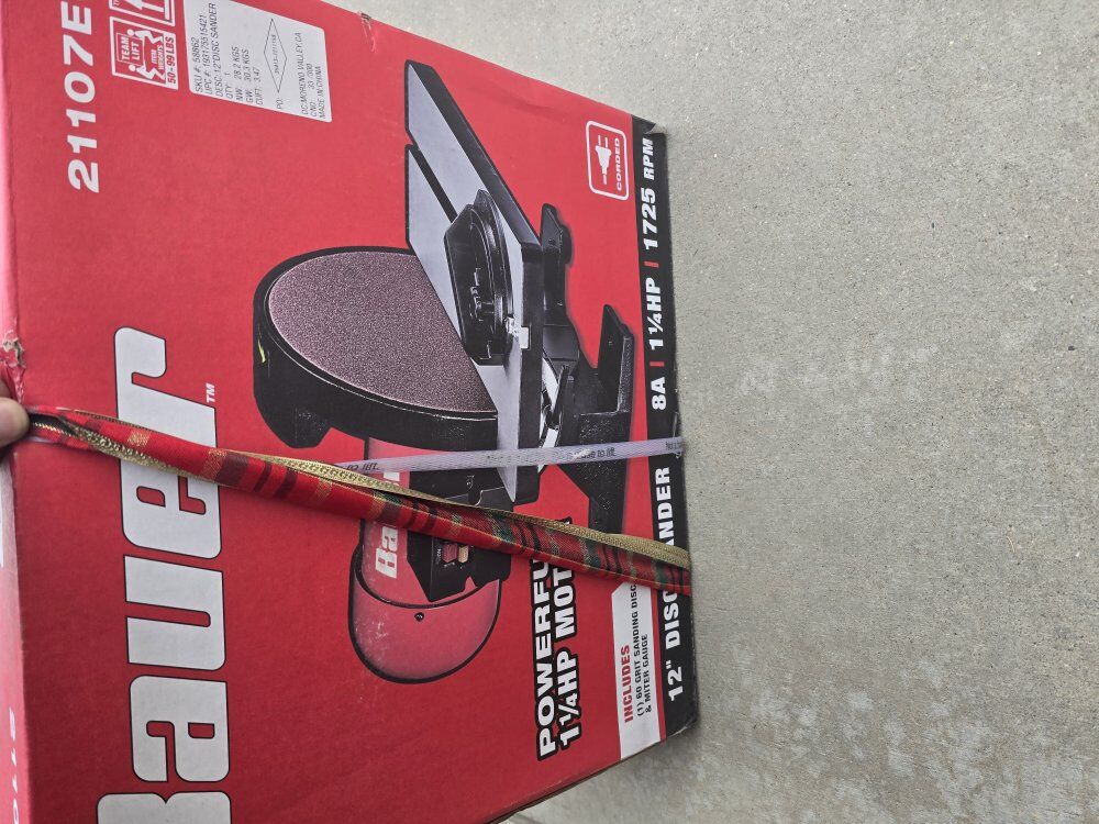 VenmoI got a 12" disk sander for early Christmas present and dont need it. 12" Bauer disk sander 1 1/4hp with sanding disks, still in the box with a bow on it. Regularly $199.