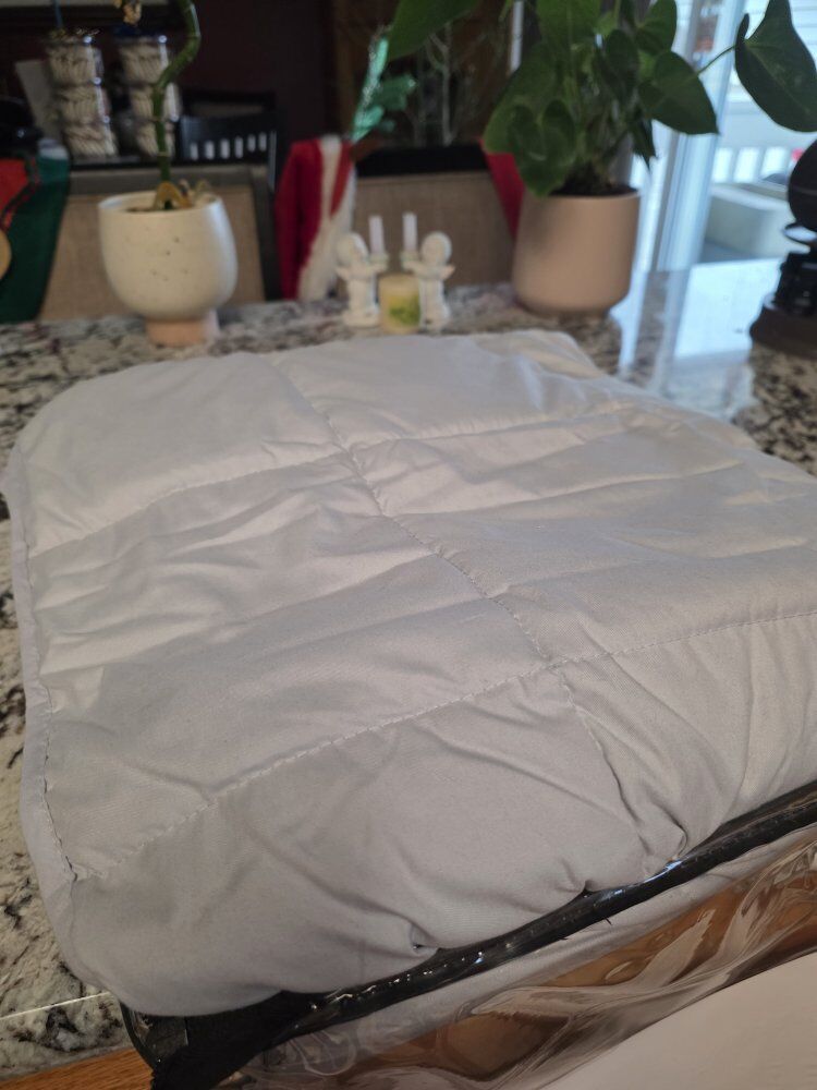 Venmo15 lb, 48" x 72" weighted blanket 100% Polyester with Glass Beads. For those who weigh 130 + lbs. Comforts people who have trouble falling asleep, even those with conditions such as Anxiety, Stress, Autism, ADHD and PTSD. Text if interested.