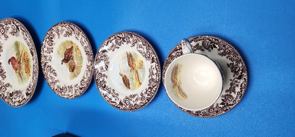 Product Name: Spode Woodland 5-Piece Thanksgiving Dinnerware Set - Porcelain Plates & Teacup and Saucer, Fall Dinnerware Collection - Microwave & Dishwasher Safe