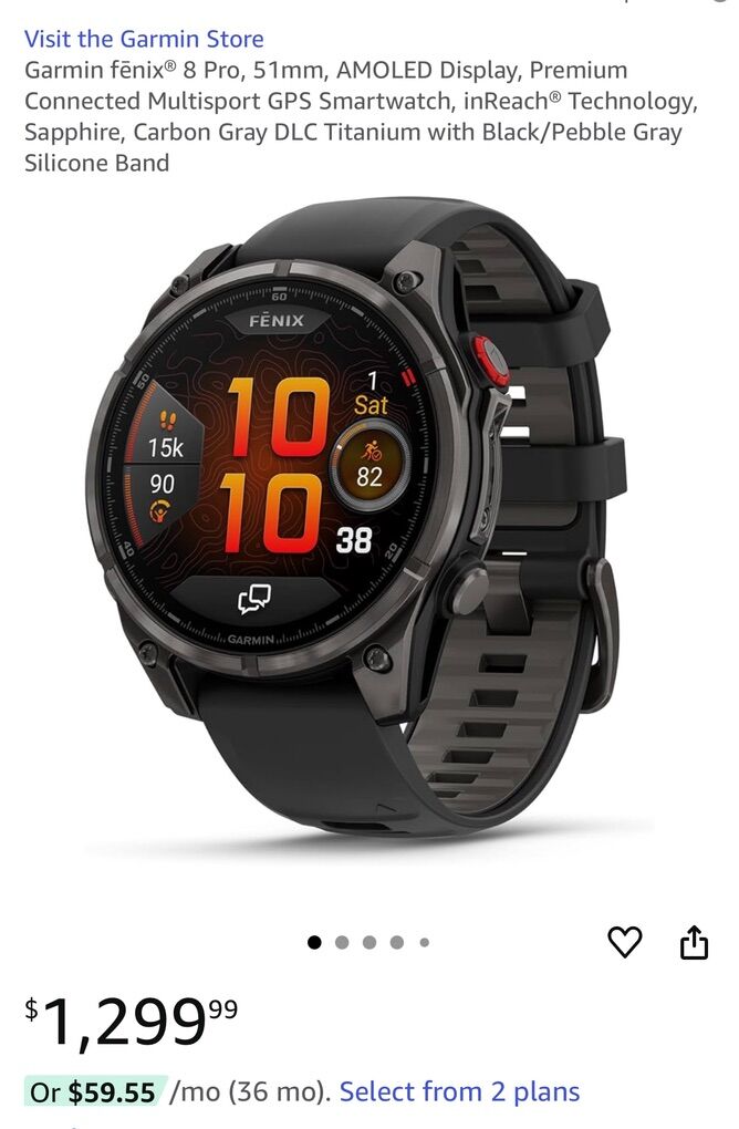 GARMIN fēnix 8 – 51 mm, AMOLED Sapphire, Carbon Gray DLC Titanium with Black/Pebble Gray Silicone Band - BRAND NEW