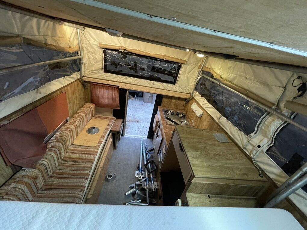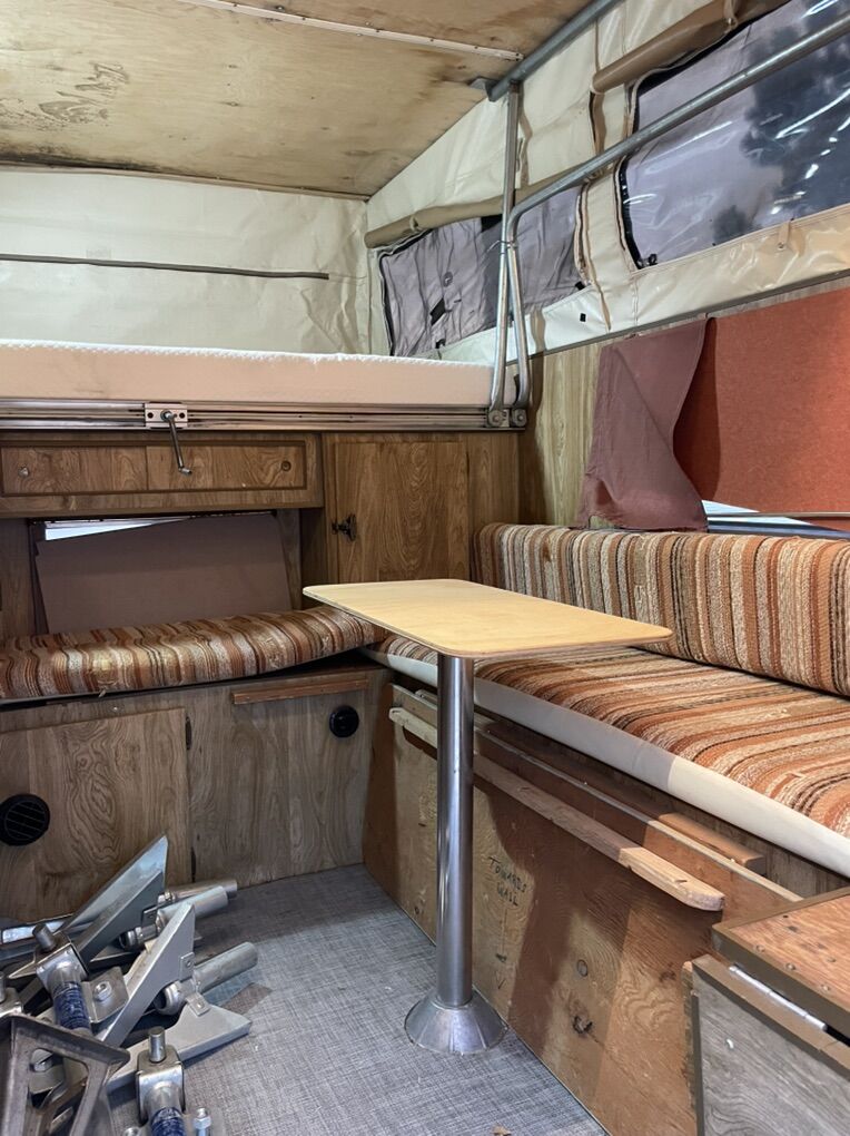 No fridge but has cooler storage area No plumbing or water tank but sink or intact and drains outside