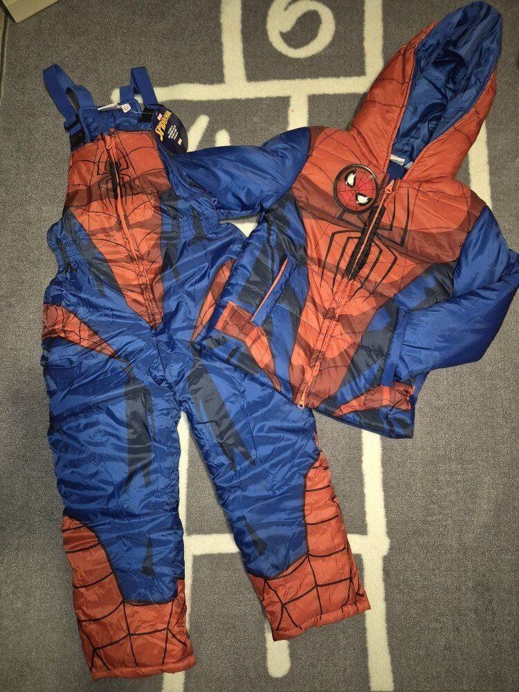 Marvel Spider-Man Boys Snow Suit Set 2 Piece Spidey Insulated Boys Ski Jacket & Snow Bib Medium-Weight New with Tags Size 5-6 Boy's