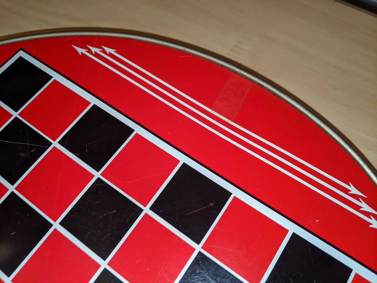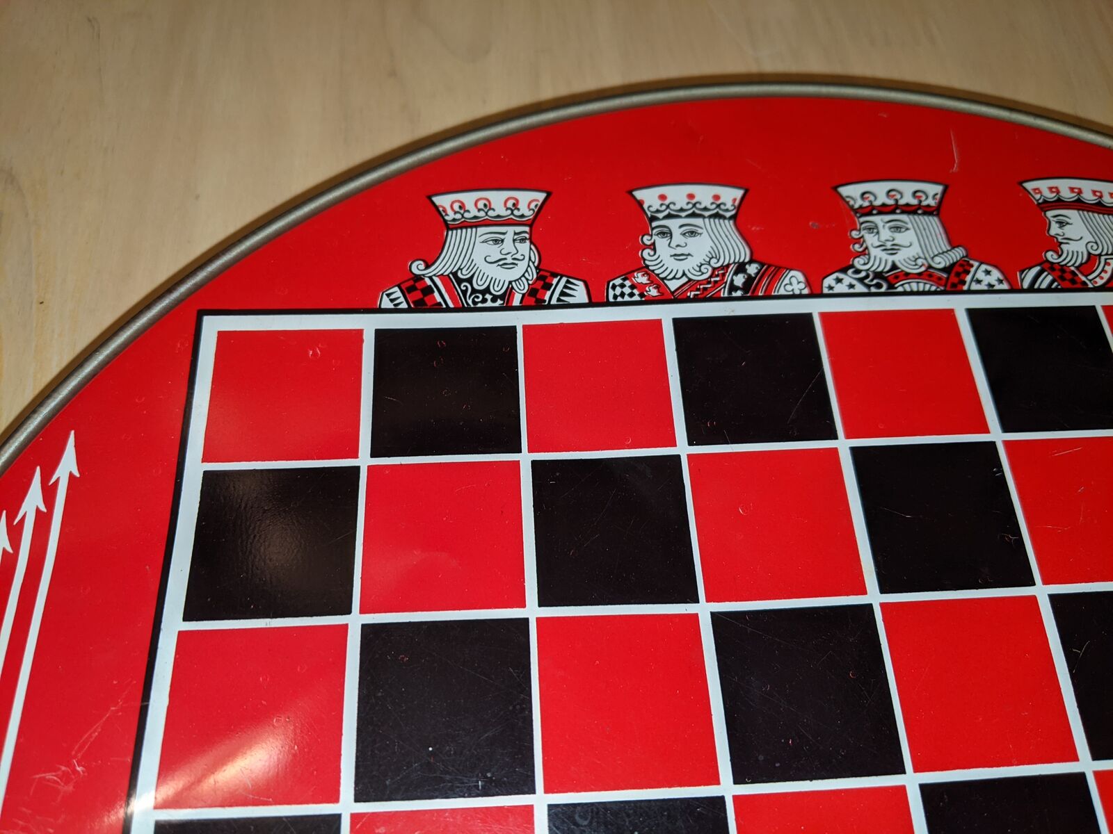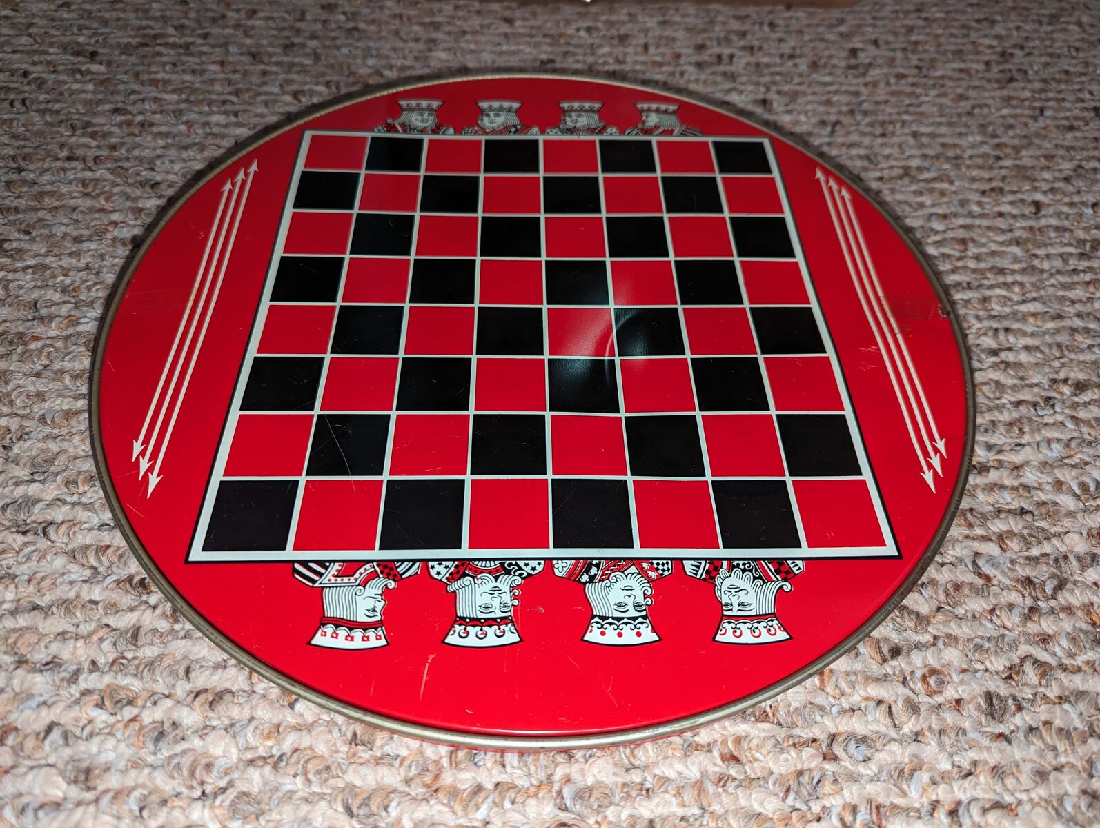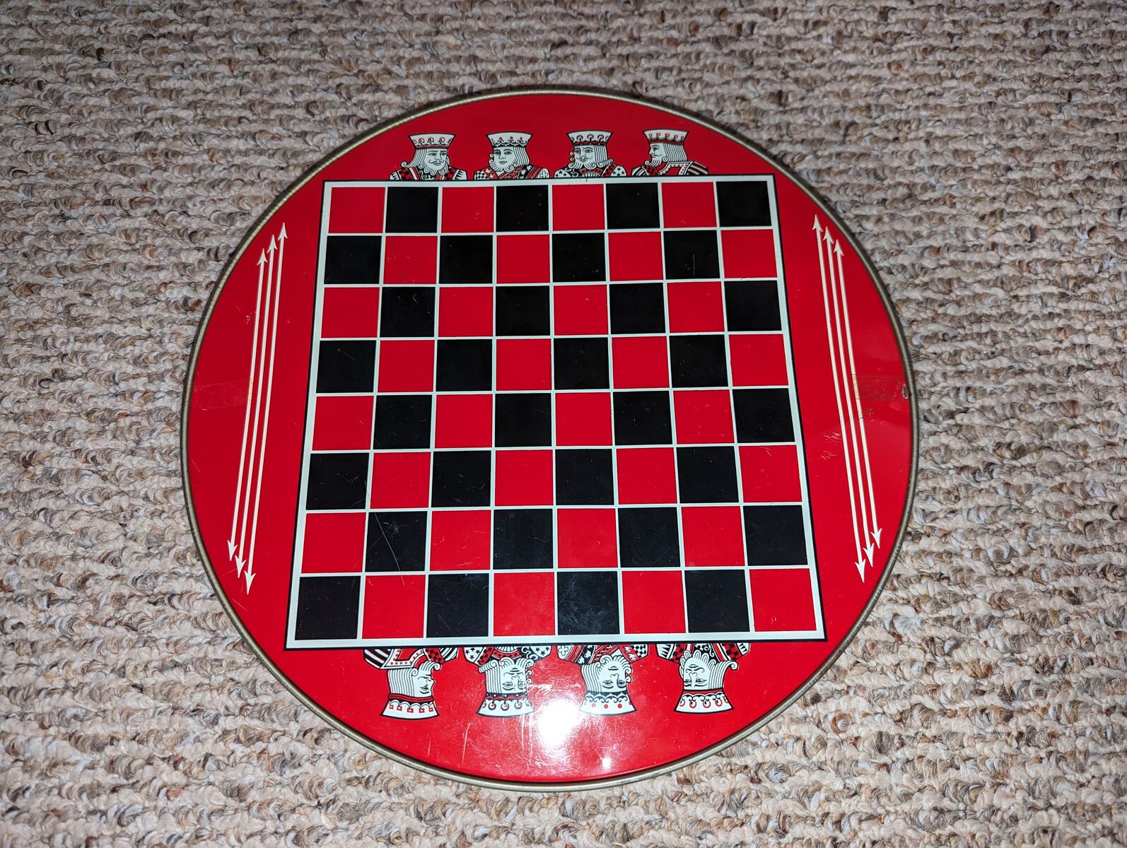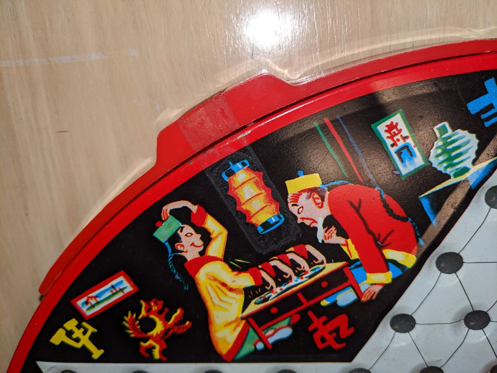 Vintage Chinese Checkers Game Tin Metal Glass Marbles Plastic Checkers. Original family owned. All checkers discs are included. Missing marbles: red-2, green-1, yelleow-1, white-1. Note corner of red drawer is broken.