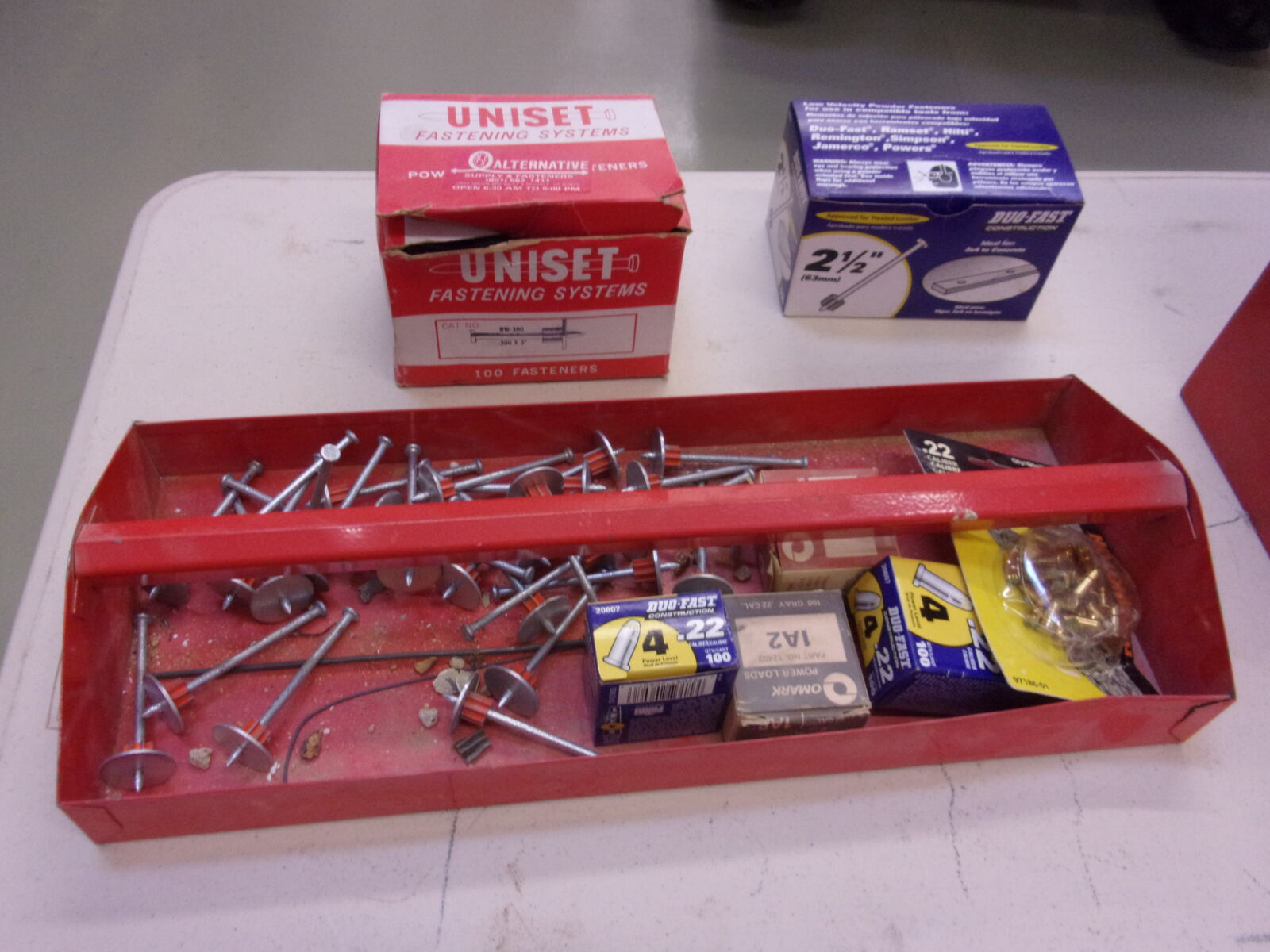 For sale is my concrete nailer , I have a few nails and loads I beleve it's a 22 calibor , comes with manuals and metal tool box