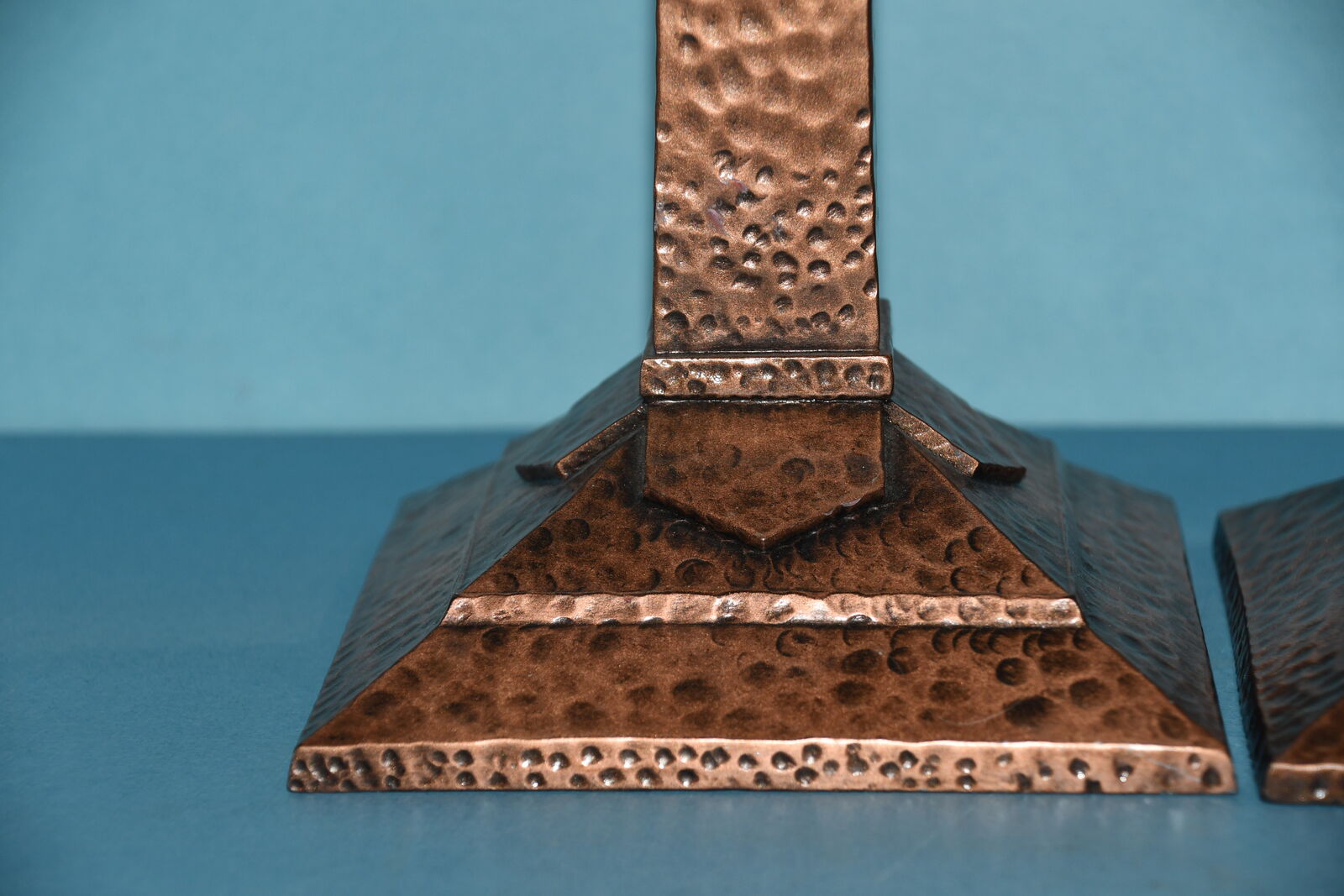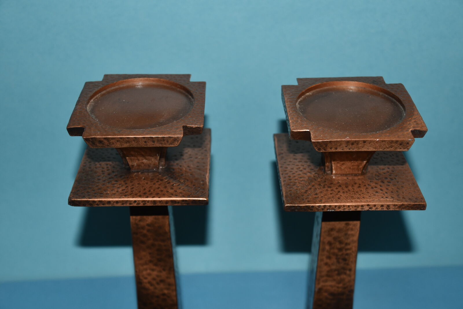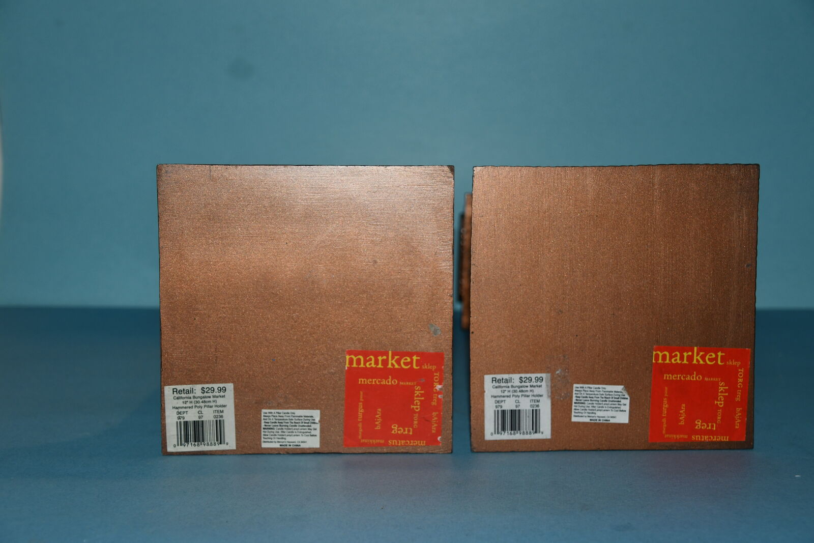 This Set of 2 HAMMERED METAL CANDLE HOLDERS are about 12" in height. They are HEAVY. They hold a 3" CANDLE. Our home is smoke free. Questions??? Please ask. We are located in Plain City. Cash only please.