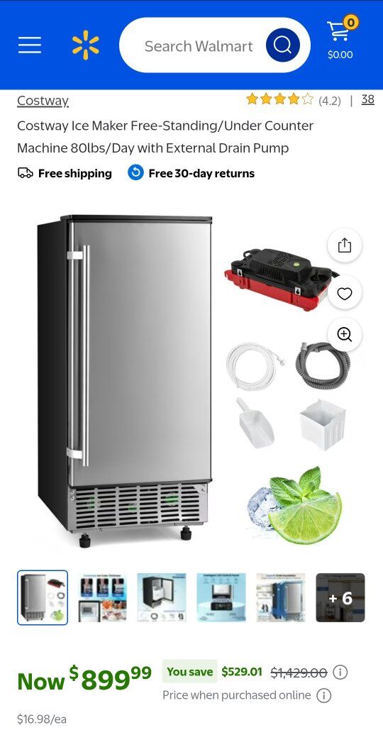 VenmoCostway Ice Maker Free-Standing/Under Counter Machine 80lbs/Day with External Drain Pump Brand New Open Box Door does have a slight ding\
