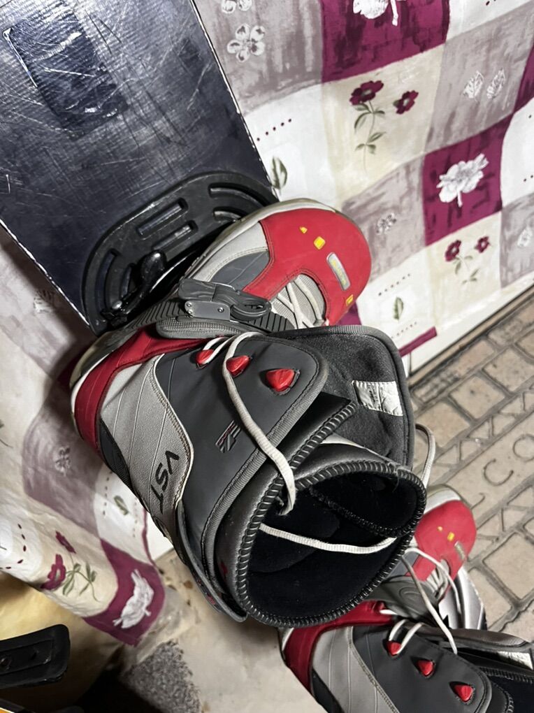149 Cm snowboard with head step X4 findings, Head size 13 boots. Step in bindings boots are in good condition no rips or tears. located in Saratoga Spgs waxed and ready to go.