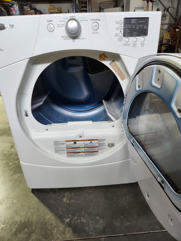whirlpool duet large capacity dryer. brand new heating element. fully cleaned and tested. very quiet, runs and heats great!