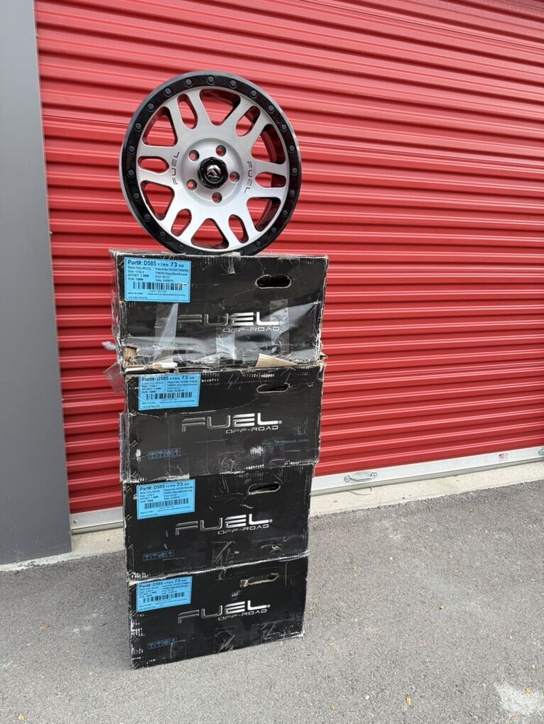 ApplePaySet of 5-Jeep Wrangler Gladiator Wheels Fuel Recoil 17X8.5” Brand New Asking $900 obo Style: FUEL-RECOIL Size: 17X8.5 FINISH: Gloss Black Brushed OFFSET: 7.4MM Bolt pattern : 5X127 HUB: 78MM Text anytime 385-402-2292