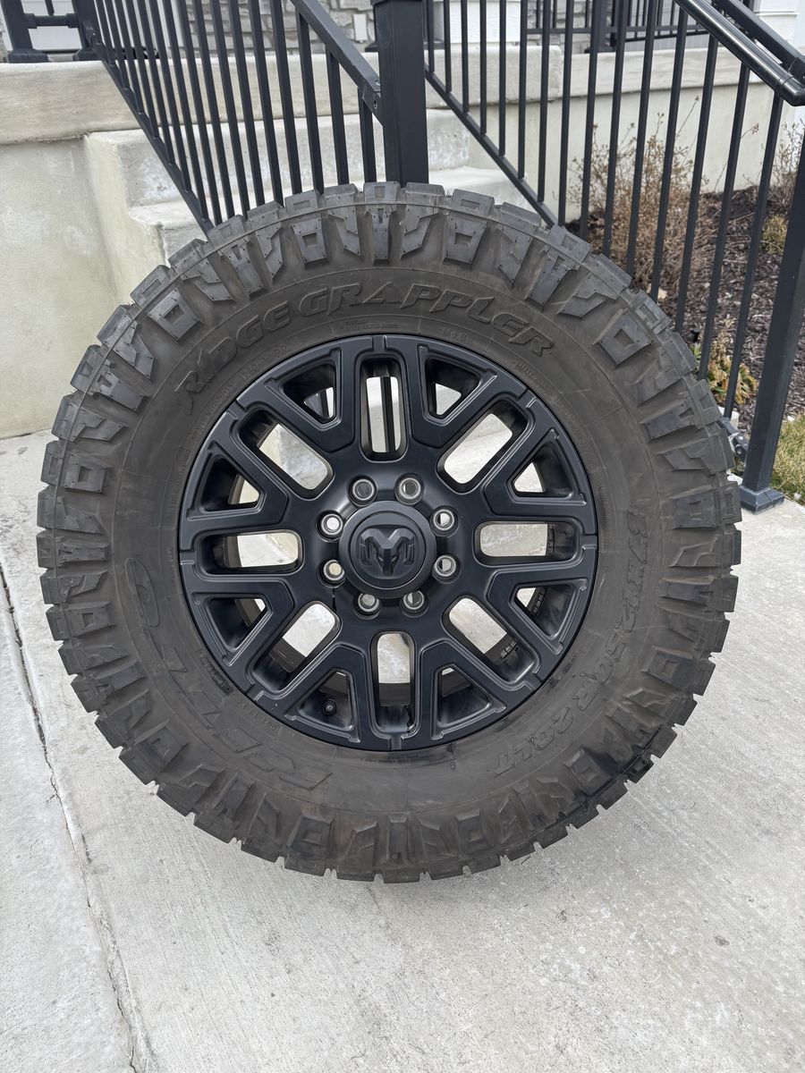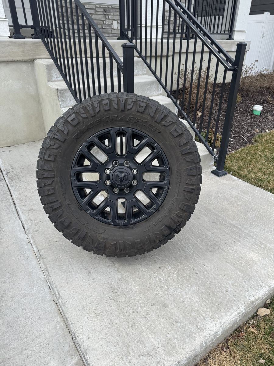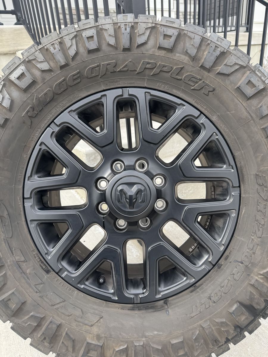 ApplePaySet of 4-Dodge Ram 3500 Limited Rims and Tires 37/12.50R20 Nitto Ridge Grappler Like New in great condition only 5000 miles on them,asking $3500 obo Tires are like new in excellent Rims are in great condition 1 rim has a minor scratch on the center cap I can sell the rims or tires separately Comes with lug nuts Bolt pattern 8-6.5 Text anytime 385-402-2292