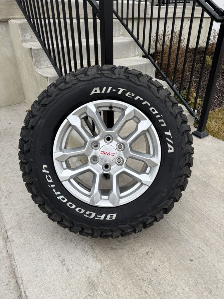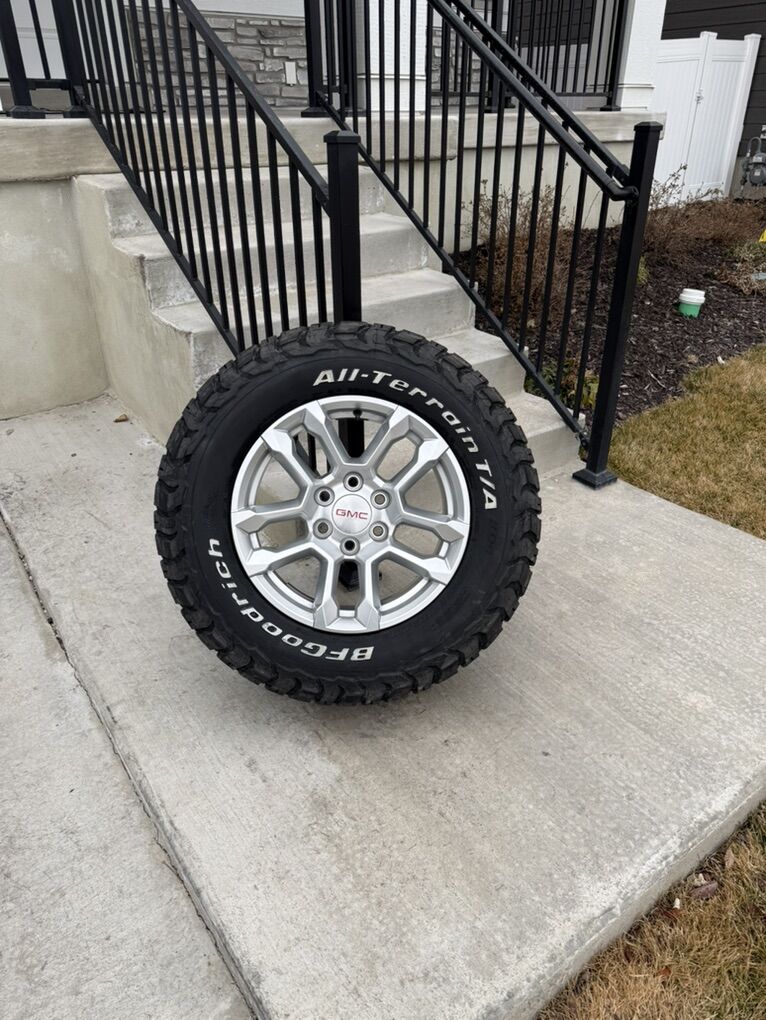ApplePaySet of 4-Gmc Sierra 1500 Yukon Rims and Tires 275/65R18 Bfgoodrich Ko3 Load E New only 100 miles on them,asking $1900 obo Comes with lug nuts and sensors Bolt pattern 6-5.5 or 6-139.7 They will fit gmc Sierra Yukon Denali canyon Chevy Silverado Tahoe Suburban avalanche Colorado Text anytime 385-402-2292