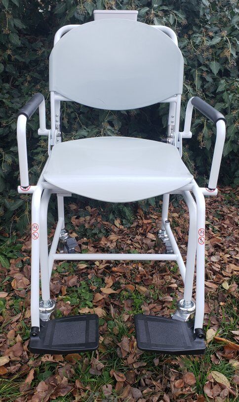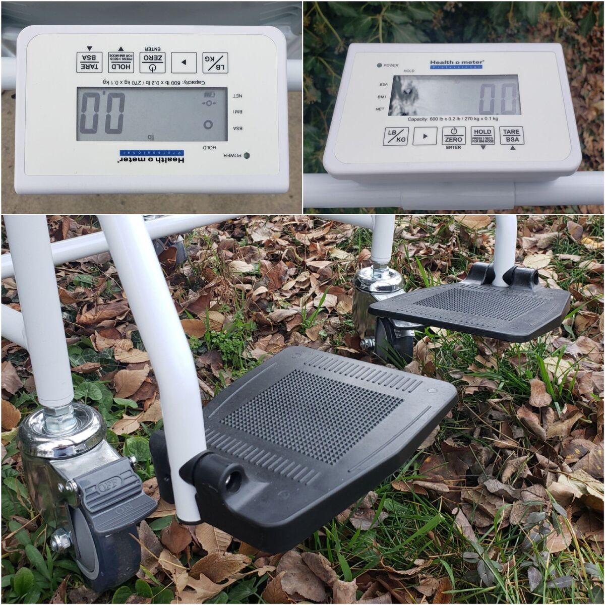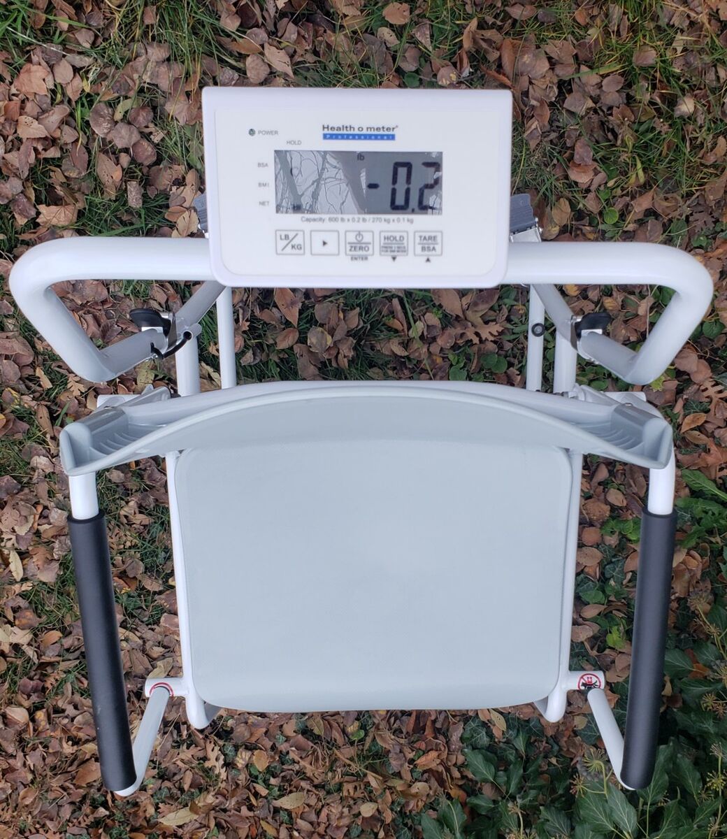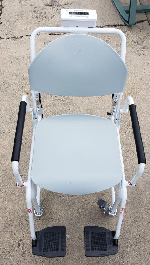 HEALTH O METER PROFESSIONAL PATIENT WEIGHING SCALE mdl 594KL SEATED WITH WHEELS PORTABLE DIGITAL CHAIR SCALE maximum 600 lbs in beautiful condition Message anytime to come and see!