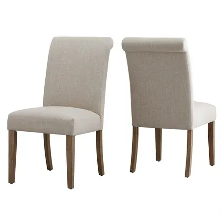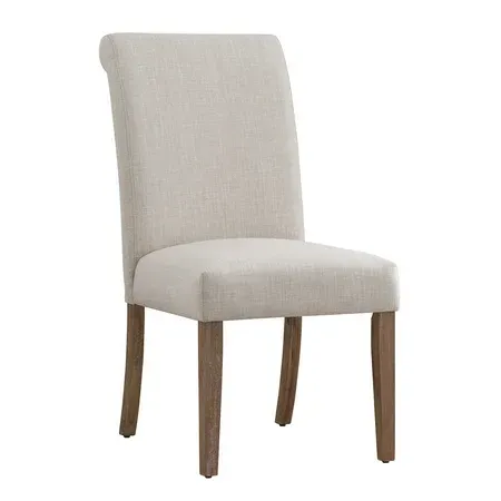 Rubberwood with linen and foam construction Slipcovers feature cotton upholstery Distressed natural finish legs Chair can be used with or without slipcover Slipcovers are dry clean only Seat cushion thickness: 5.5 in. Seat dimensions: 19 in. depth x 20.5 in. width x 20 in. height Dimensions (overall): 29 in. depth x 20.5 in. width x 40 in. height Assembly required Ships in one (1) box