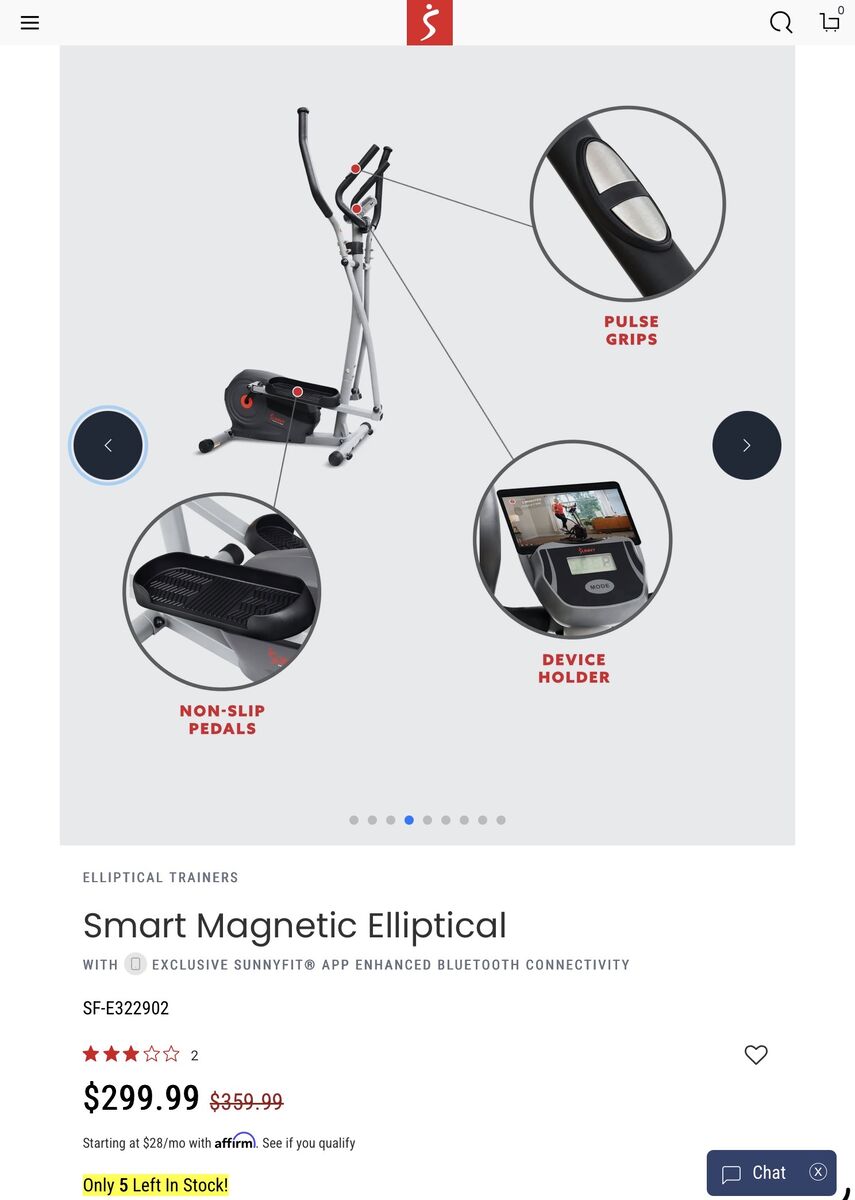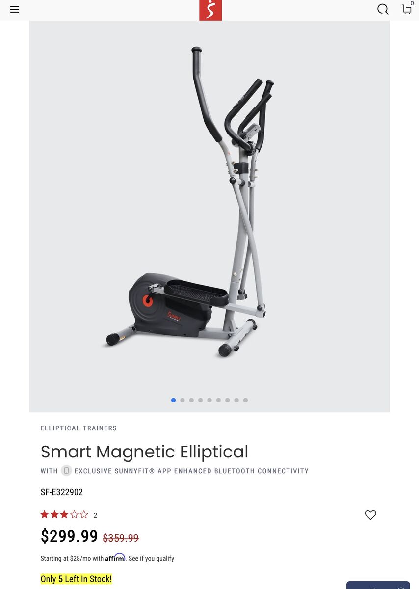 Stay connected to your fitness with a total body intense elliptical exercise experience. The Sunny Health & Fitness Essential Interactive Series Elliptical helps exercise enthusiasts stride with trainers and connect with a wider community that believes fitness is for everyone. Work out your upper and lower body with a smooth magnetic resistant stride that offers a low impact elliptical exercise machine and is easy on your joints and limbs. This elliptical has all the essentials feature for a complete total body workout.