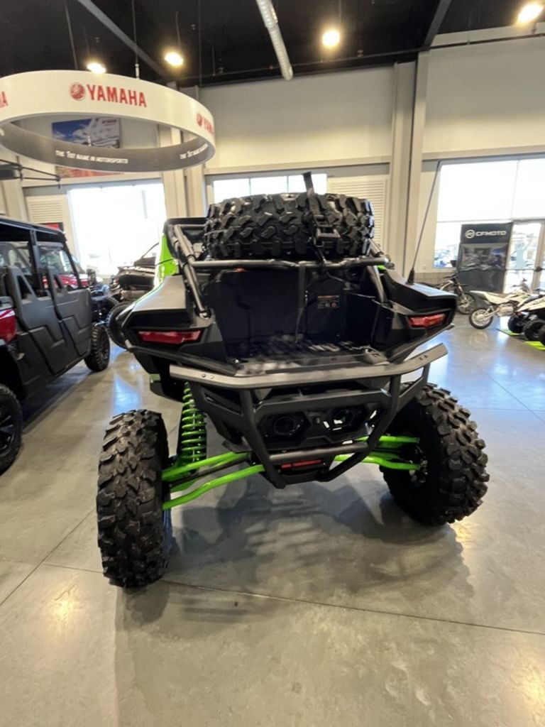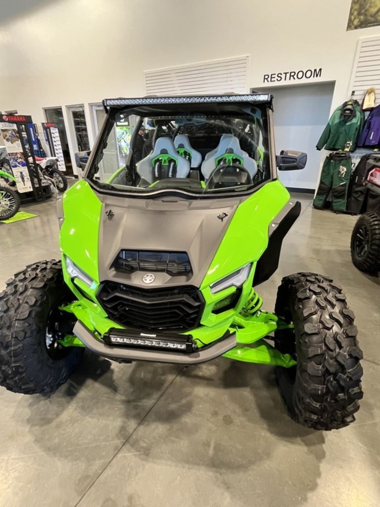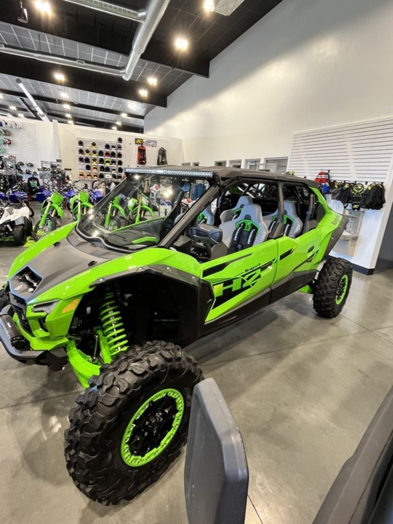 2026 Kawasaki Teryx®4 H2 Deluxe eS The all-new Teryx®4 H2 and Teryx®5 H2 high-performance side x sides are designed for dune and desert domination. The 250-HP¹ 999cc in-line 4-cylinder supercharged engine is harnessed by a continuously variable transmission (CVT) and a highly rigid frame complemented by long-travel suspension that helps balance the engine's massive power for maximum control. Predictable handling and confident stopping power add to the well-balanced package delivering maximum fun that can be shared with the whole family. Features may include: 250-HP SUPERCHARGED PERFORMANCE At the heart of the all-new Teryx®4 H2 and Teryx®5 H2 high-performance sport side x side is Kawasaki’s newest 250-HP¹ supercharged engine that is built beyond belief. 33-IN TIRES & KECS WITH ACCELERATION SENSORS Knowing that power is nothing without control, Kawasaki engineers went to great lengths in designing the transmission, frame, and suspension to allow drivers to take full advantage of the engine’s potential, resulting in smooth, linear power delivery, a highly composed character, predictable handling, and confidence-inspiring brakes. TAKE LEISURE-TIME FUN TO THE EXTREME WITH UP TO 5 PASSENGERS The Teryx4/5 H2 side x sides don't compromise on delivering enjoyment to you and your passengers. Whether it’s the ease of getting in and out or strapping into the well-padded, ergonomic seats, the roomy cab and its high-grade, automotive-style fit-and-finish add to the thrilling supercharged experience. LOW PROFILE SILHOUETTE DESIGN As the new Teryx® side x side flagship, it was important that the Teryx4/5 H2 side x sides look the part. The sleek, low-profile design, wide stance, and aggressive front-end are complemented by luxuriously painted Lime Green bodywork—a head-turning combination that conveys both its high level of performance as well as its high-grade build.