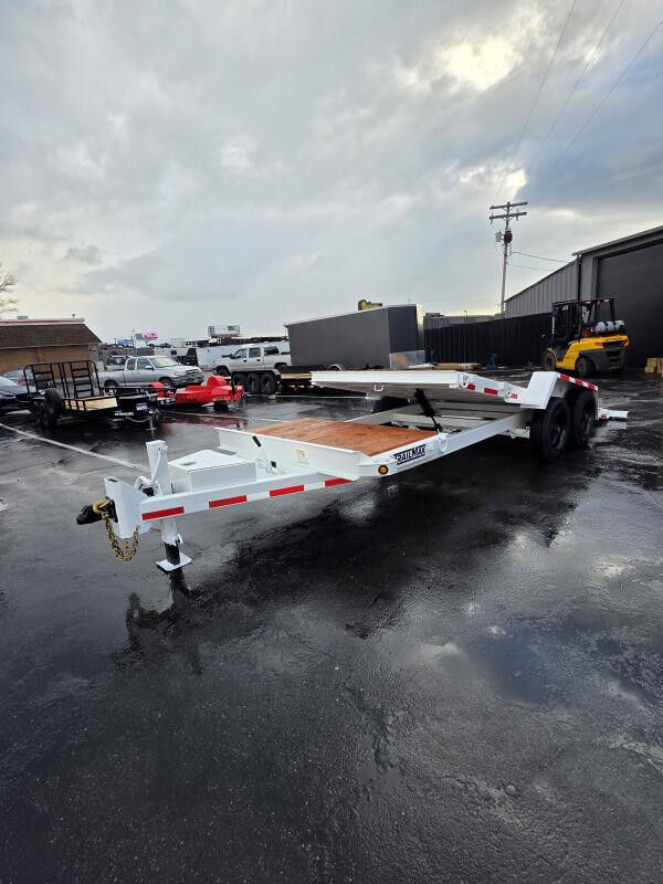 WIDTH: 102" LENGTH: 20' (4'+16') DOOR(S)/RAMP(S): Tilt Deck WEIGHT: 3470 lb GVWR: 16100 lb PAYLOAD: 12630 lb AXLE(S): Tandem Axle TIRES: 16" COUPLER: 2 5/16"\