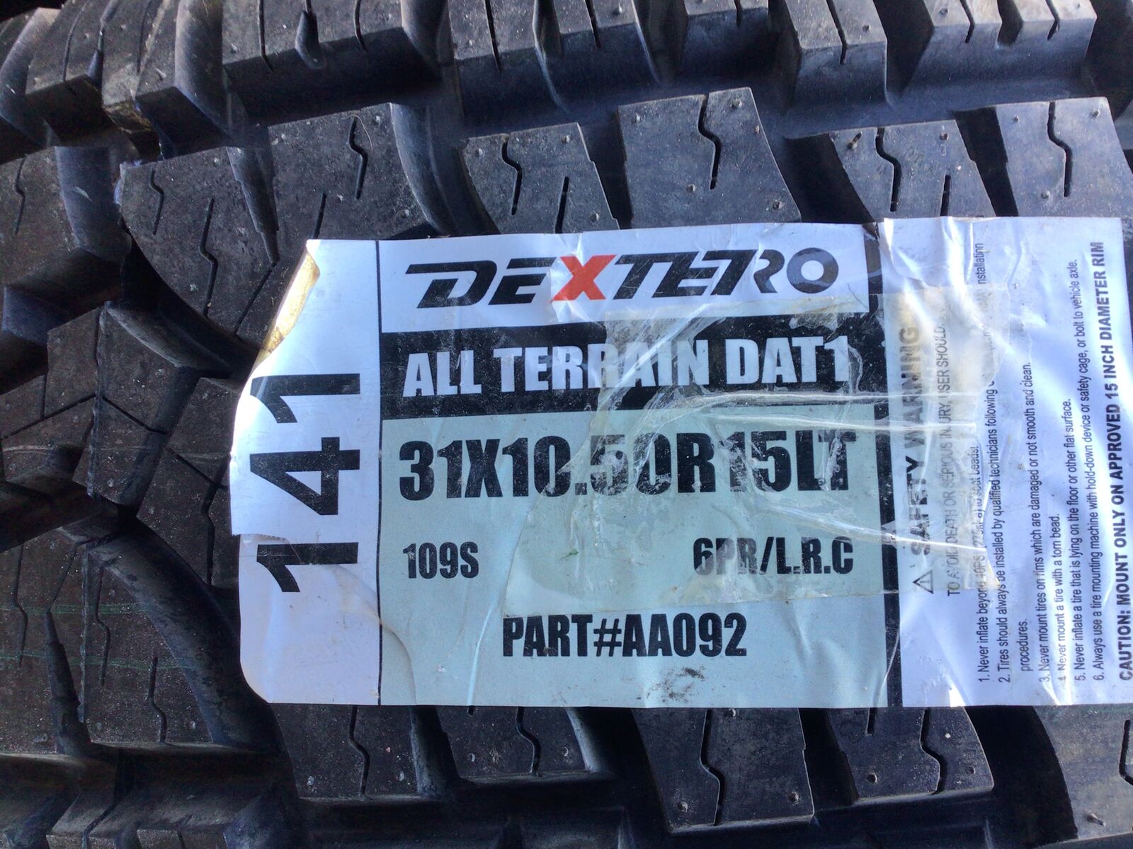 Set of (4) Dextero AT tires. I got them for a project that I'm not going to finish. I also have a set of Jeep Wrangler wheels for additional cost.