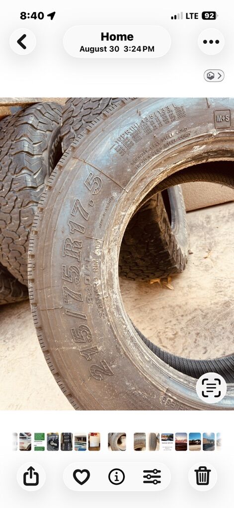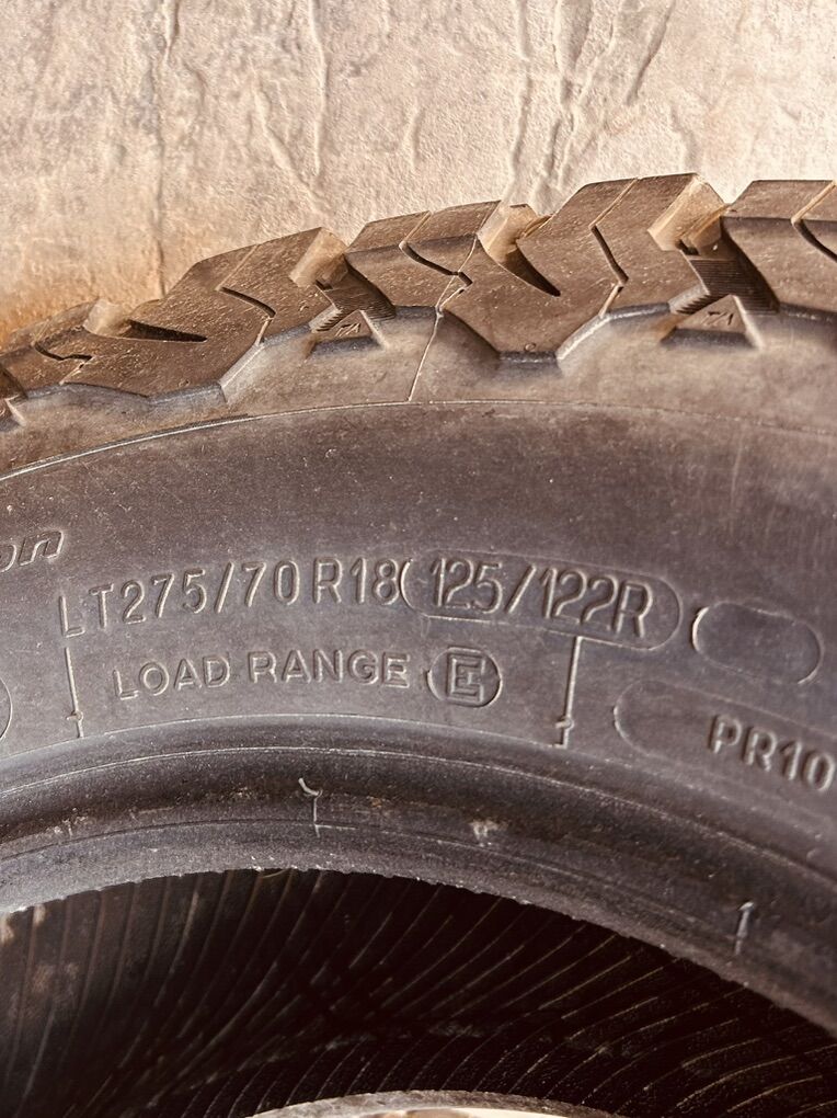 One like new trailer tire, 215/75R17.5 and 3 BF Goodrich KO tires tires, size is LT 275/70 R 18. Make an offer.