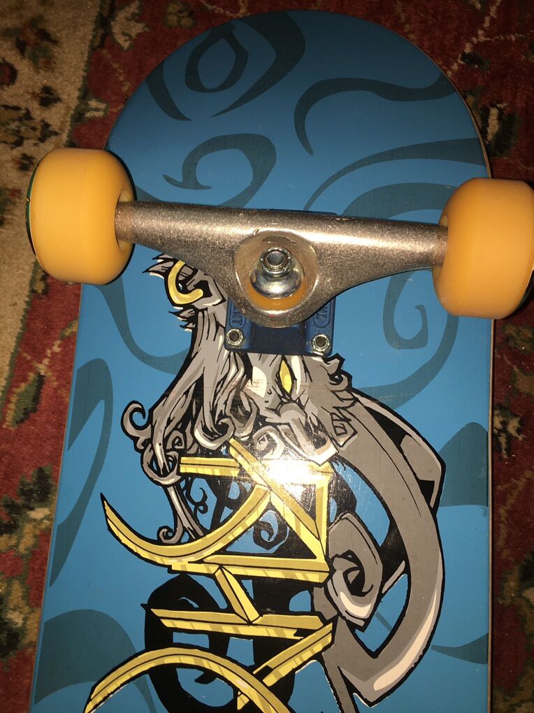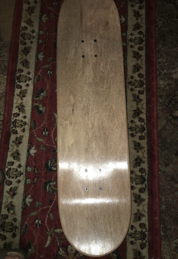 For sale is a new, never used skateboard. It was bought MANY years ago, but has been sitting in a closet since. It has a 7-ply deck and comes with a piece of deck tape, as shown in the pictures. Due to age, the deck tape may not have it’s full-strength adhesive, so some contact cement might be required.