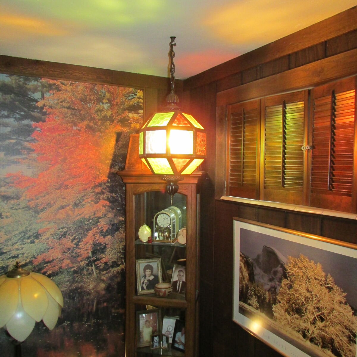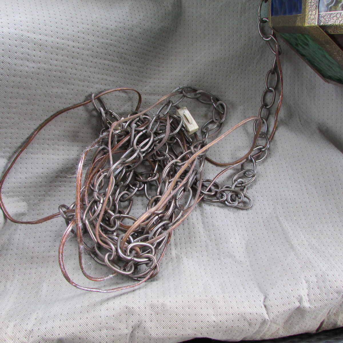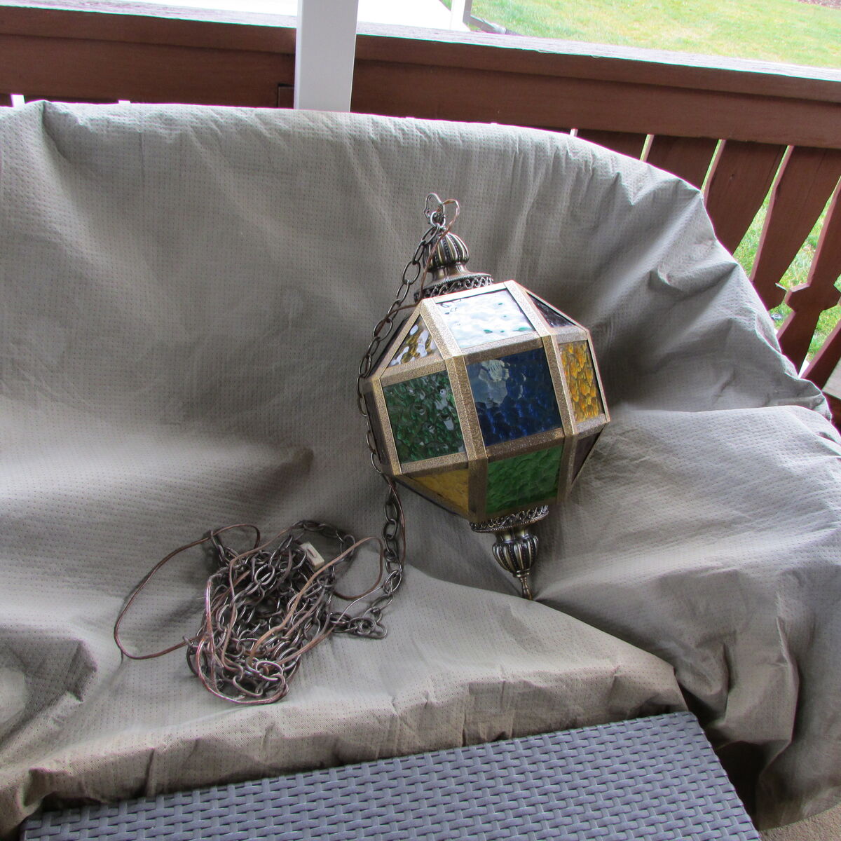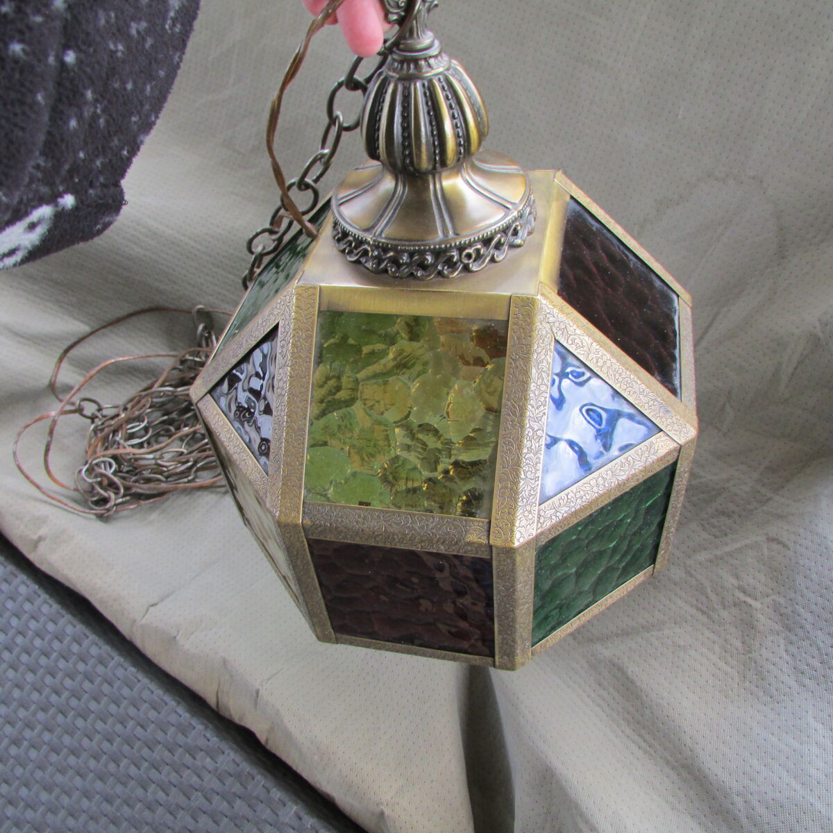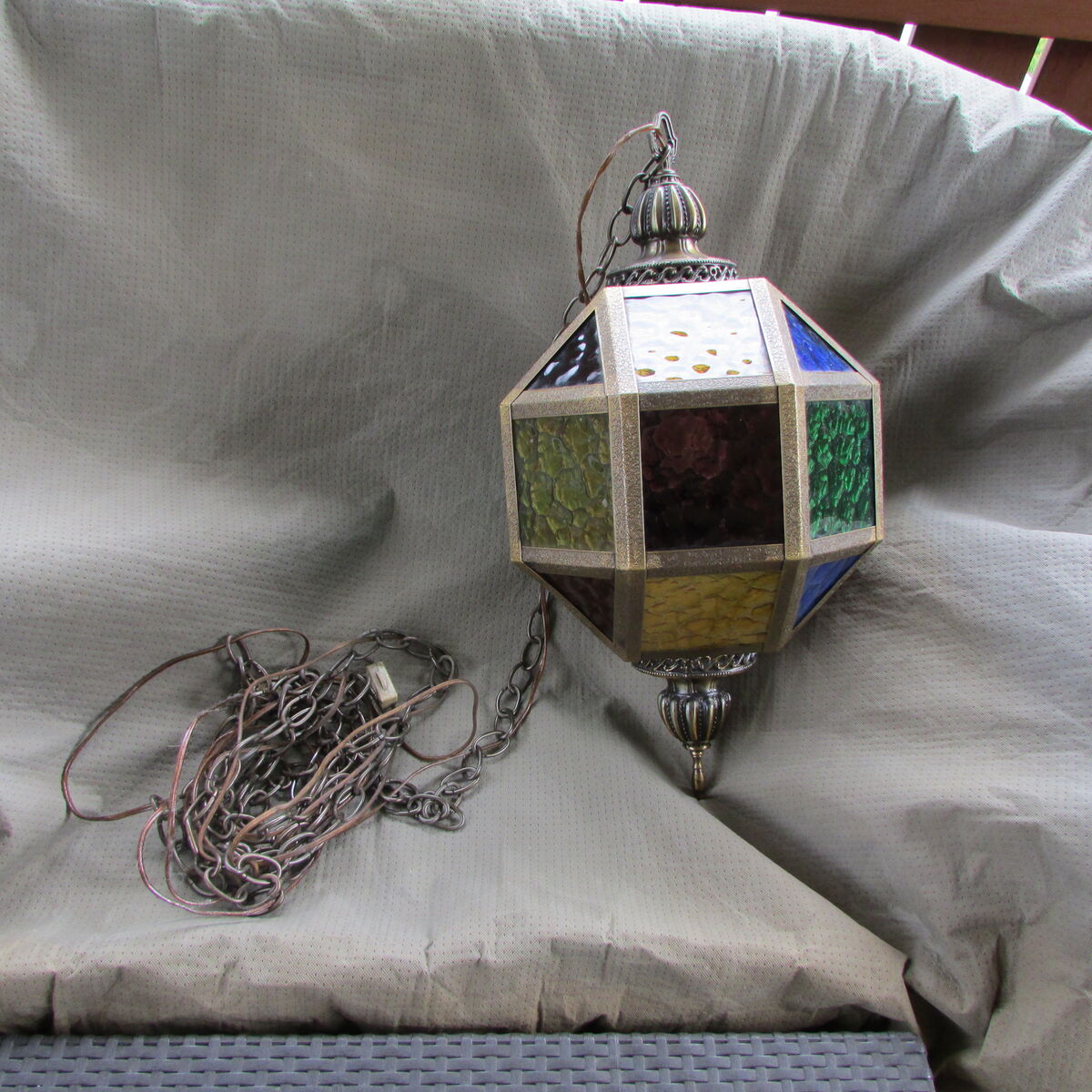 26 Sided Chain Hanging Lamp, All Original Glass Panels with No Cracks. About 20 Ft of Cord and Chain. Been in My Family Since early 60's. Absolute Mint Condition! 110.00 Cash, No Electronic Pymt.