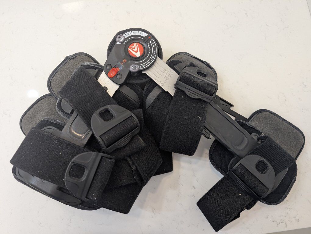 Typical Uses / Indications: Perfect for someone recovering from: • Knee surgery (ACL, PCL, meniscus, tendon repairs) • Ligament injuries or soft tissue damage • Fractures of the knee area or post-op immobilization • Controlled motion rehab programs where hinge locking is needed • They sell for $160-$200 new.