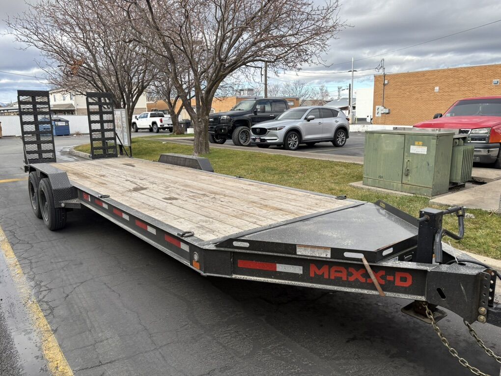 MaxxD 26ft trailer this has the upgraded 8000 pound axles 17.5 inch rims with 18 ply tires.
