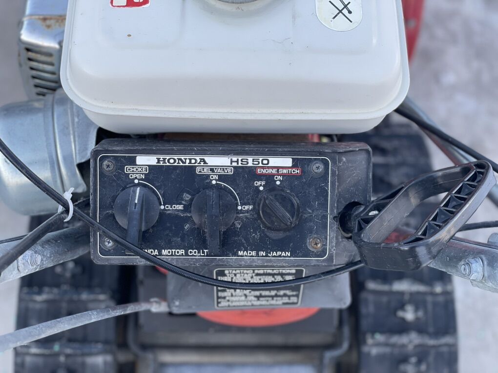 VenmoHonda snowblower. Model HS 50. Powerful two stage machine that can move a lot of snow easily. Very stable with tank treads for extra traction. Three forward speeds, neutral, and reverse. Pull start. Runs super great.