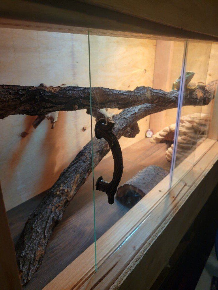 Optional Add-Ons (Any Size) • Custom door upgrades: $60+ • Custom foam/rock background: $100–$500 • Built-in hides / shelves / ledges / sticks: $10–$200 • Extra ventilation or fan installs: $50–$100 • LED / heat / UVB lighting install (customer supplies lighting): $25 • Additional sealing beyond standard caulk: $30 • Painting or staining: $150