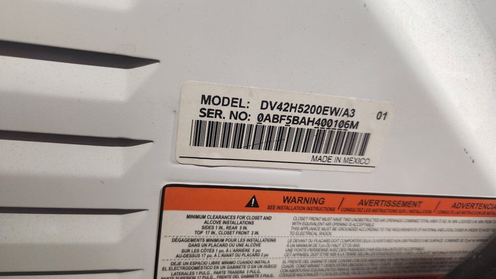 VenmoDryer Model DV5200 7.5 Cu ft Electric Washer Model WF42H5200AW/A2 These are stackable