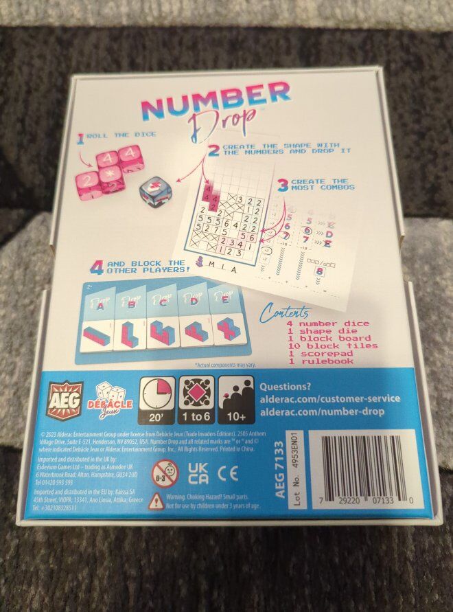 VenmoThis is for the roll and write board game Number Drop. Box and parts are in excellent shape. $10
