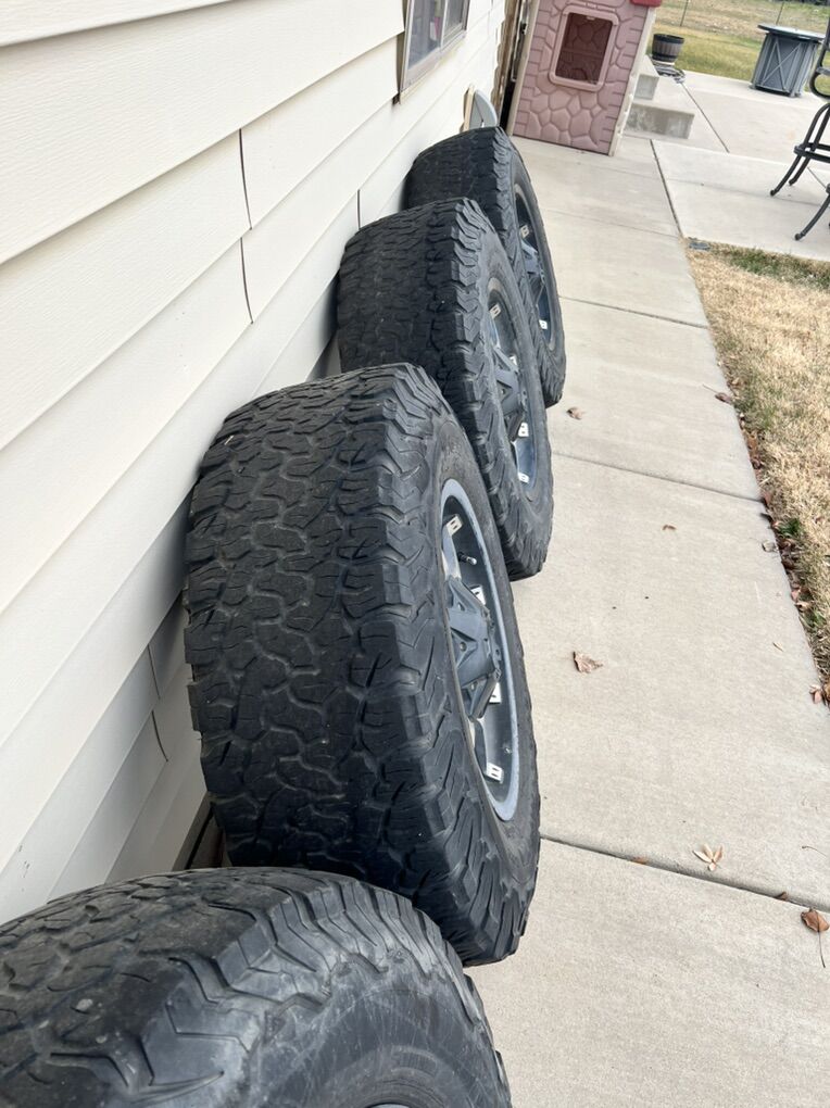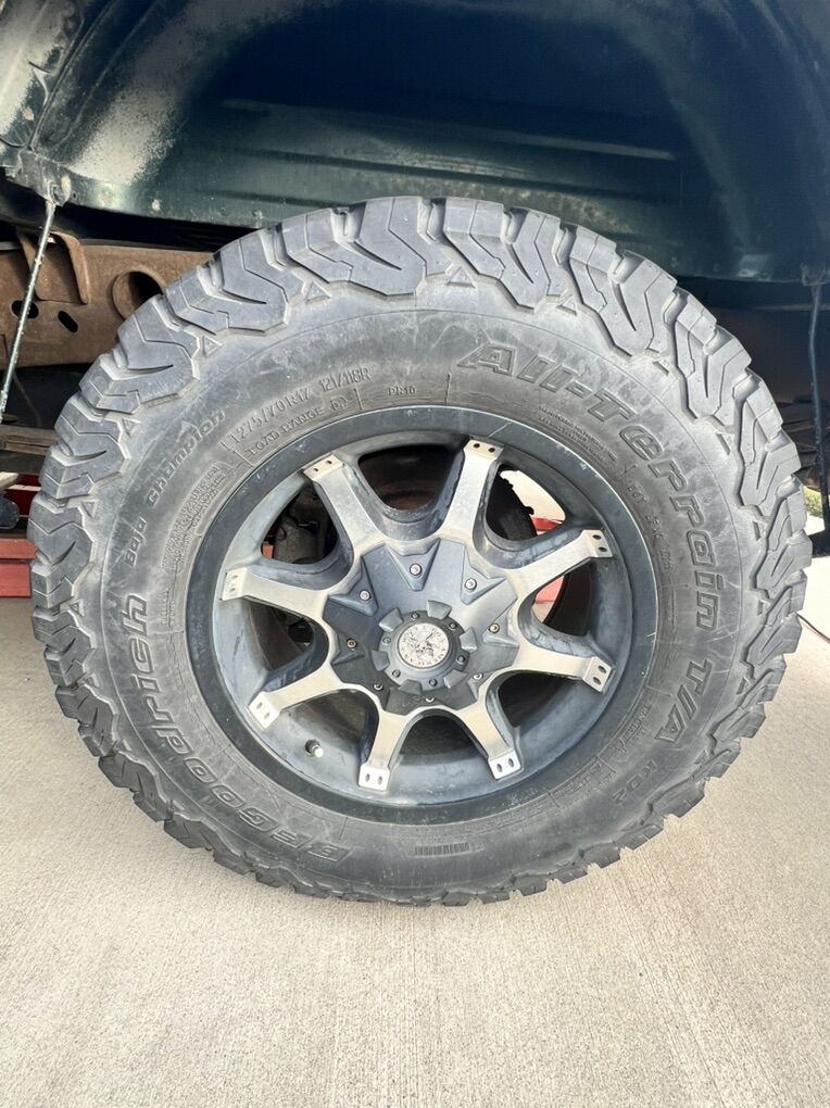 American outlaw 17 inch wheels and 275/75/17 tires for a half ton Chevy 6x5.5 or 6x139. tires are kind of old but have a little tread left and wheels could use a cleaning. Asking $400 obo text 801-814-7367