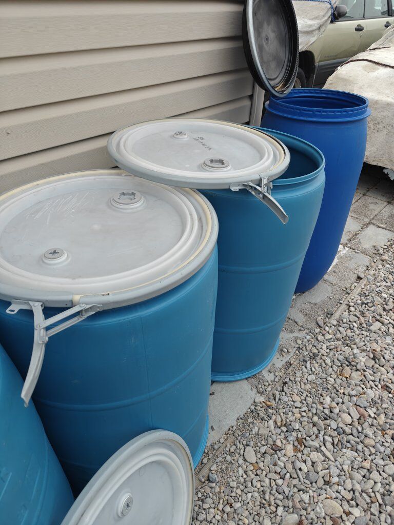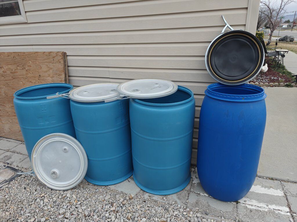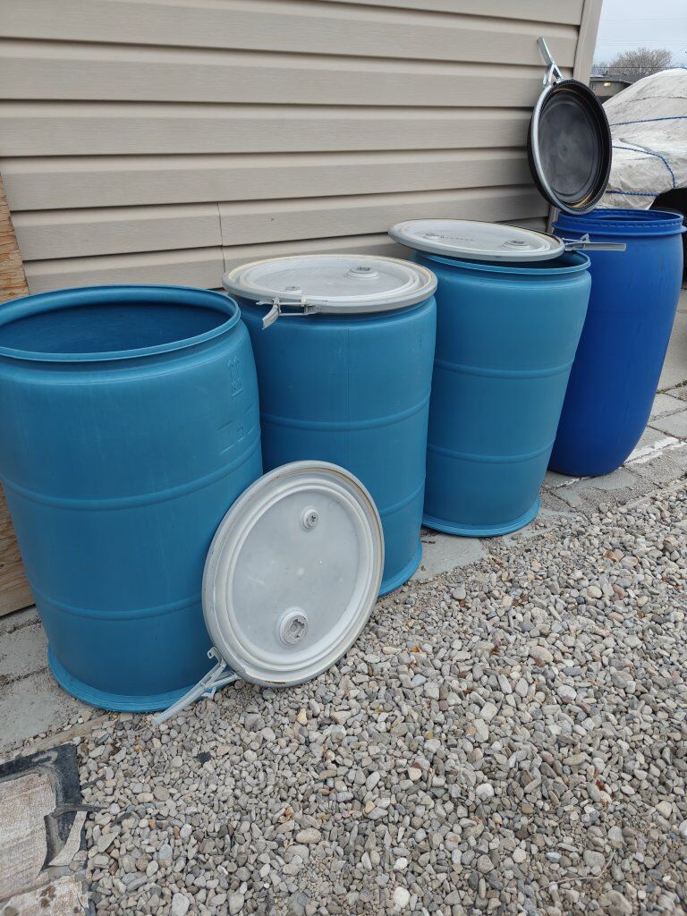 Plastic Barrels, 55 Gallons Capacity, Open Top with Removable Lids and Metal Security Rings. In Great Condition.!! Good for Shipping stuff, ... Store Animal Food, Grain...or any other products to keep safely.. Only $50 Each Unit. Located in Magna. Call or text me at : (801)604-3240.