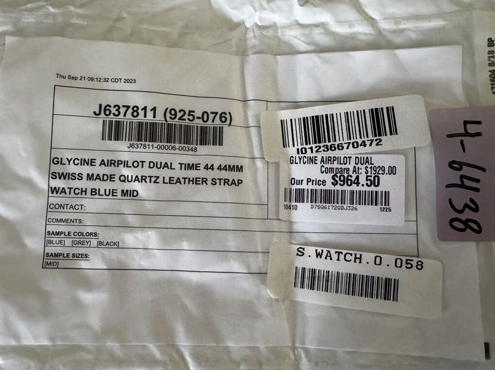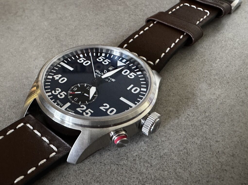 VenmoGlycine AirPilot Dual Time 44mm Swiss Made Quartz Watch Leather Strap, Blue Face.