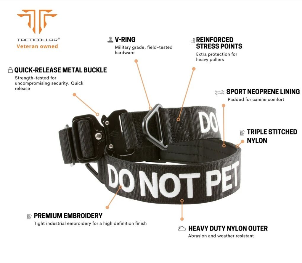 DO NOT PET pet collar for Medium dog breeds. Prevent accidents and incidents early with this high vibrant visible dog collar. Create a safer environment for your pup and everyone around while on walks, at the park, or training. Ideal for working dogs, reactive dogs, dogs in training, and dogs who prefer their personal space. Communicate to the public - These brightly embroidered collars are designed with safety in mind. It provides yourself and others (such as dog walkers, adults, and children) from a distance with what kind of natured dog is approaching them. It can help assist with preventing dog bites, attacks, and fights between other pets. Soft inner neoprene lining to keep your dogs comfortable. Strong quick-release metal buckle - easy to click on and off. Strong metal D-ring and an additional ring. This is a hefty rugged collar weighing about .6lbs (about the weight of a regular soda can). 15$ cash or Venmo. I have 2 available.