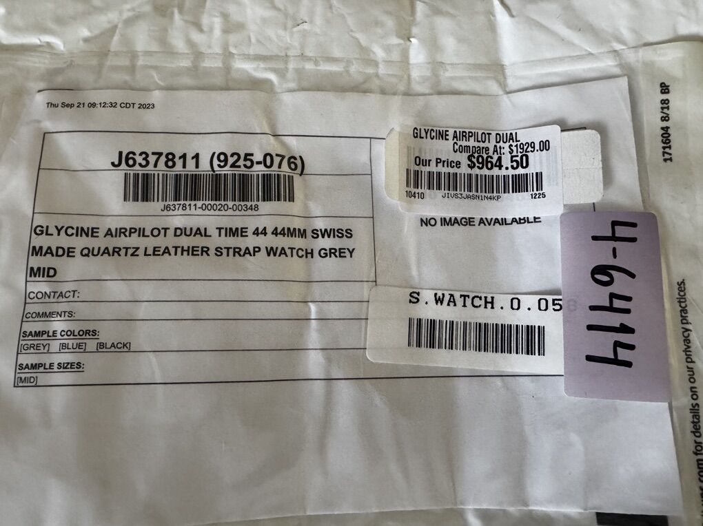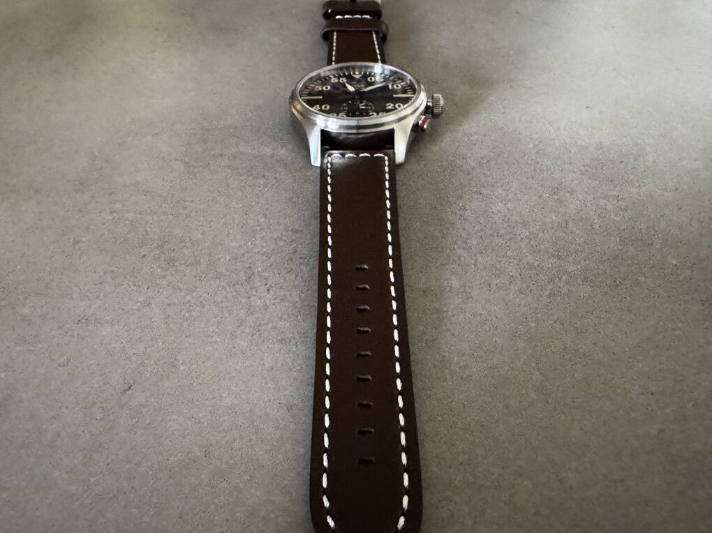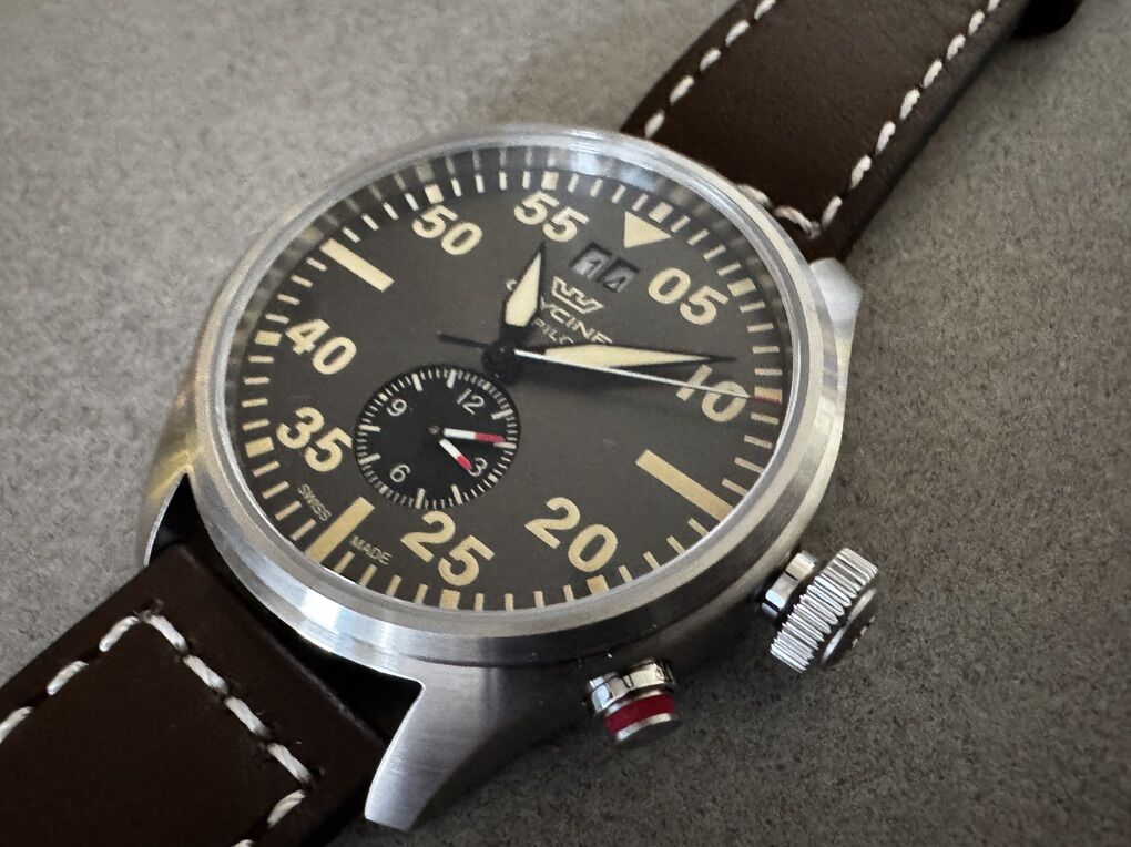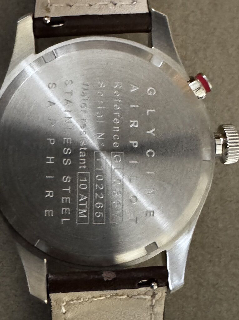 VenmoGlycine AirPIlot Dual Time 44mm Swiss Made Quartz Watch, Grey/Brown Face. Leather Strap.