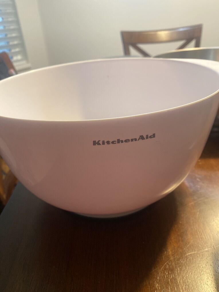 Various sized mixing bowls. 2 plastic KitchenAid bowls and 3 stainless steel bowls. Asking $5 each, $2 for smallest bowl. Will sell all together for $20